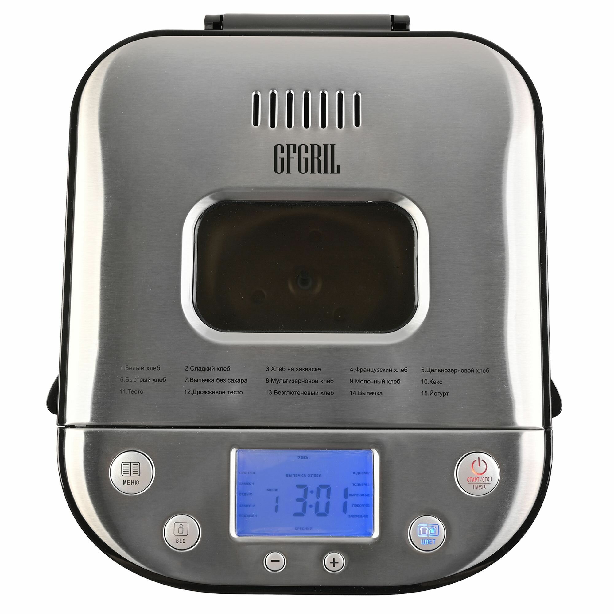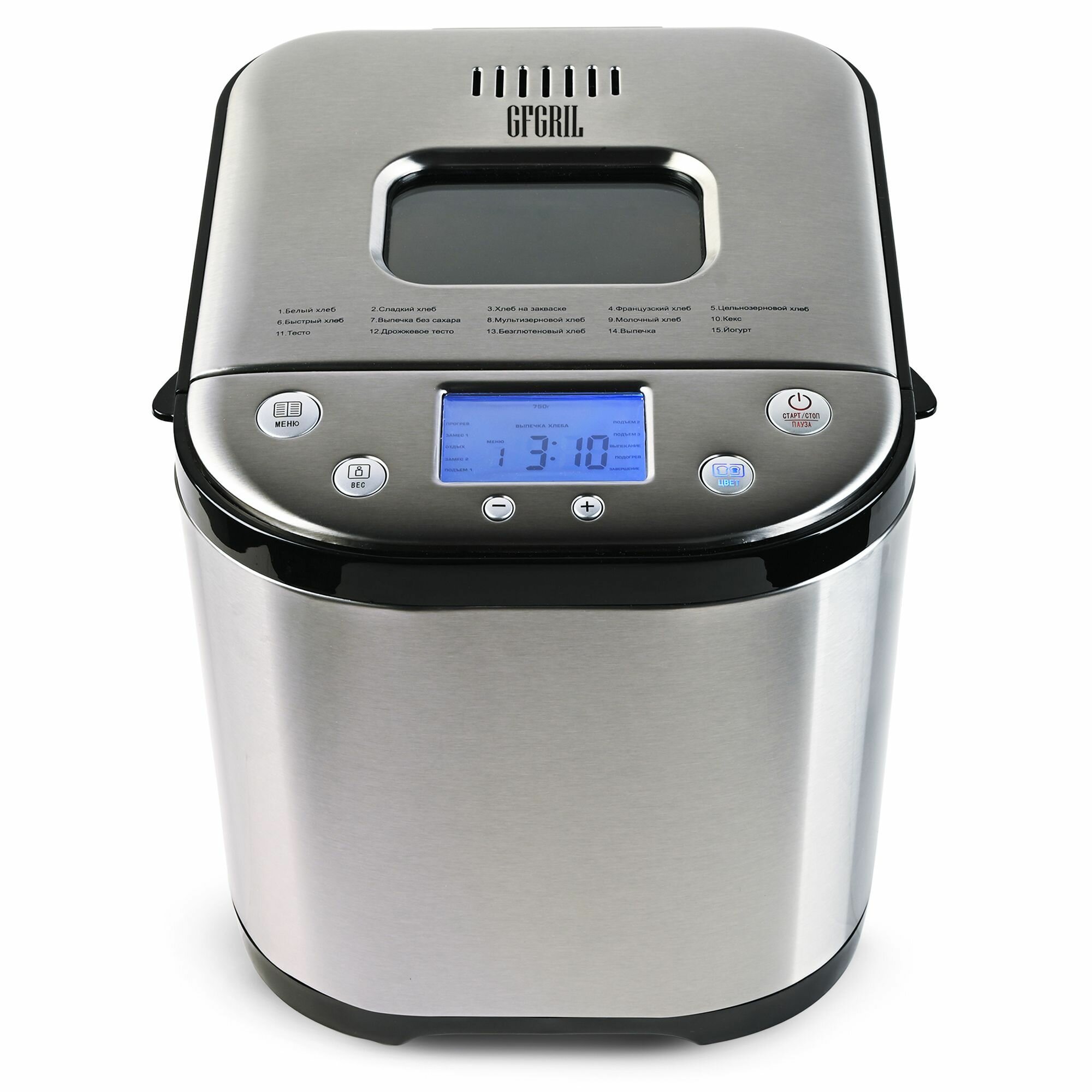 Хлебопечка с замесом теста GFGRIL GFB-5000 выпечка, тесто, йогурт; 15 программ интересное: