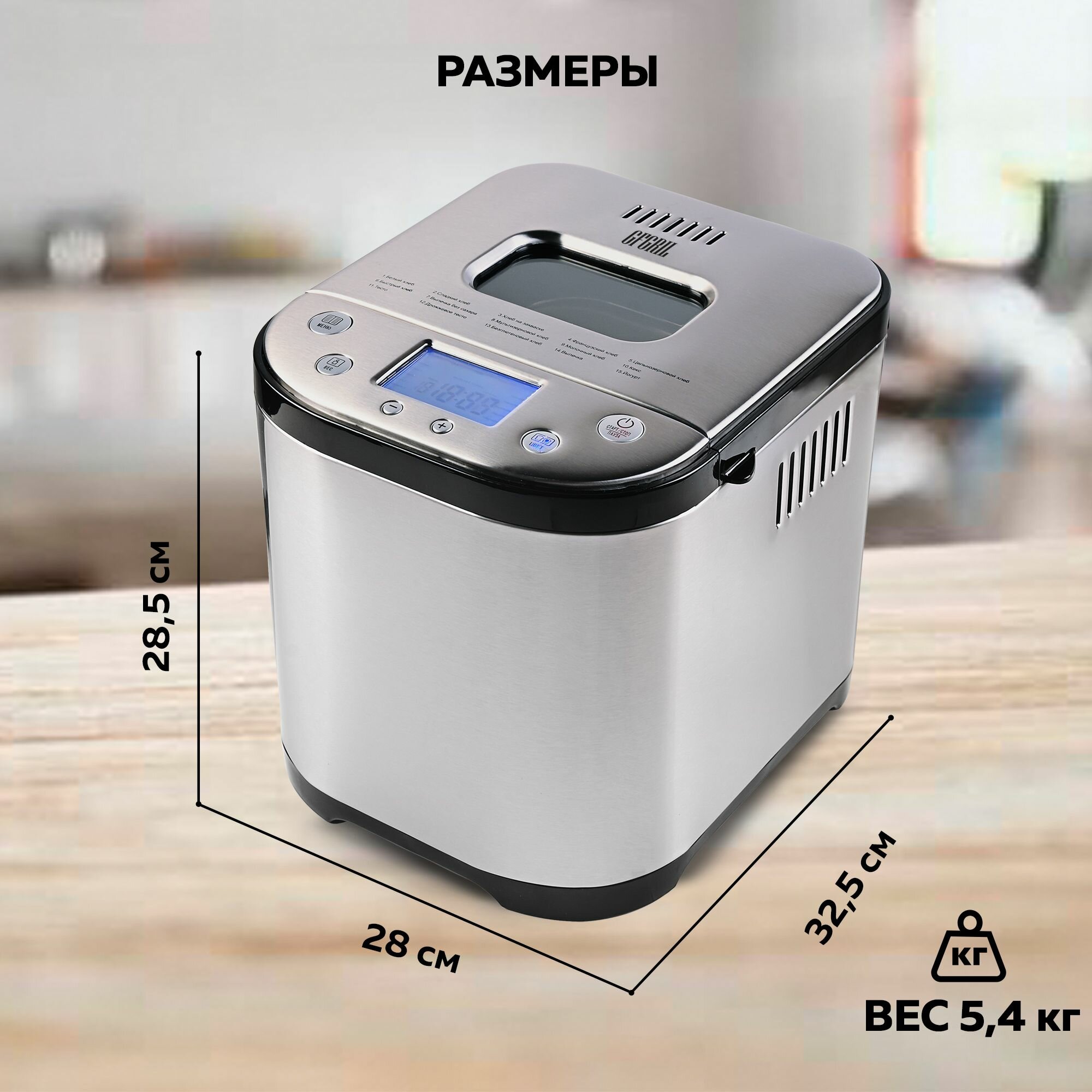 Купить Хлебопечка с замесом теста GFGRIL GFB-5000 выпечка, тесто, йогурт; 15 программ
