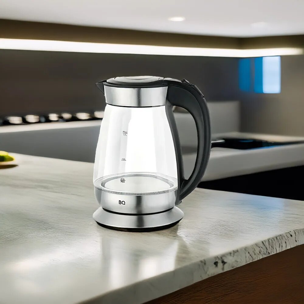 Чайник электрический BQ KT1738G Черно-серебристый / Стеклянный / 1.7 л 2200 Вт