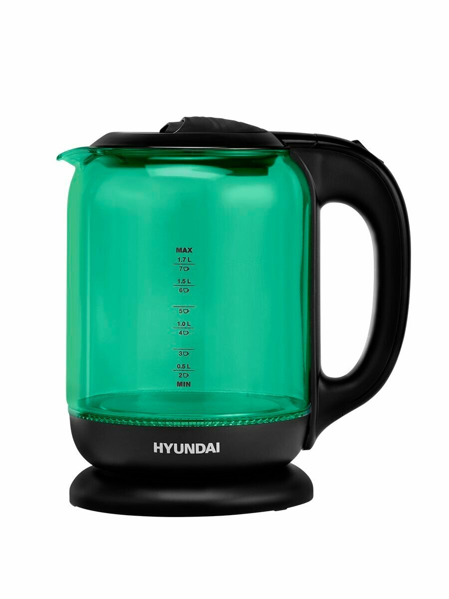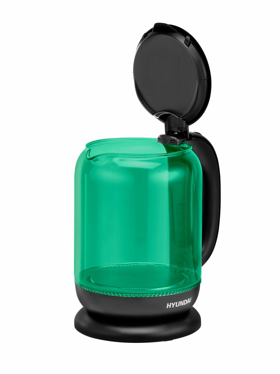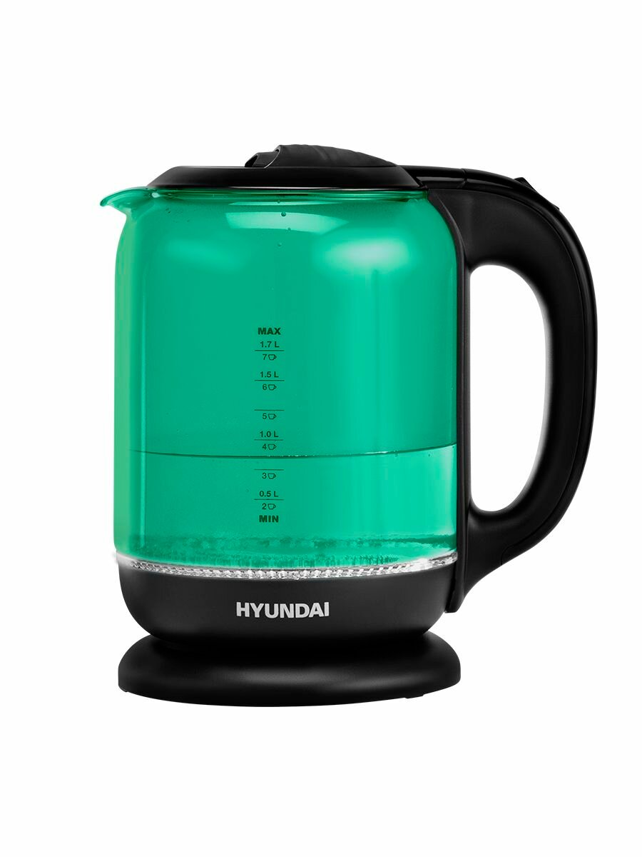 Стеклянный чайник электрический Hyundai HYK-G2807, 1,8 л, стекло бирюзовое, пластик черный