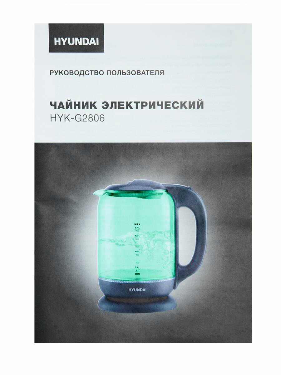 Чайник электрический Hyundai HYK-G2806, 1,8 л, стекло голубое, пластик черный