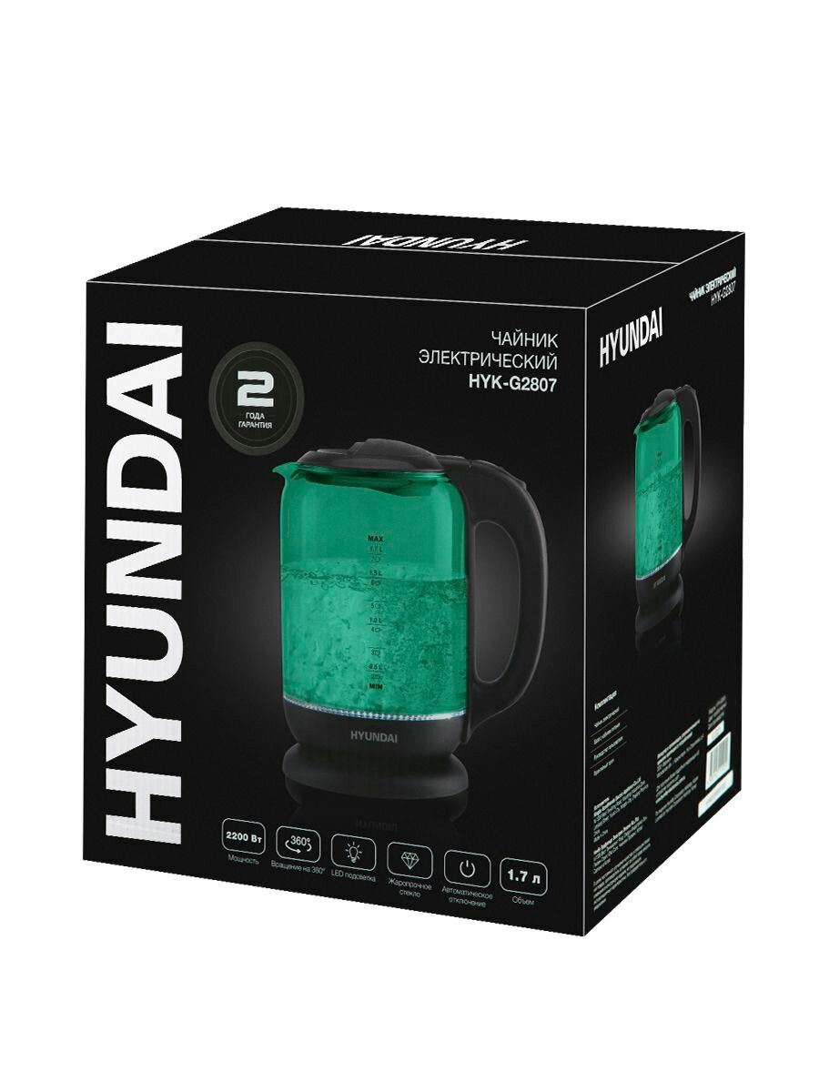 Чайник Hyundai HYK-G3804, 1.7 л., 2200 Вт, черный
