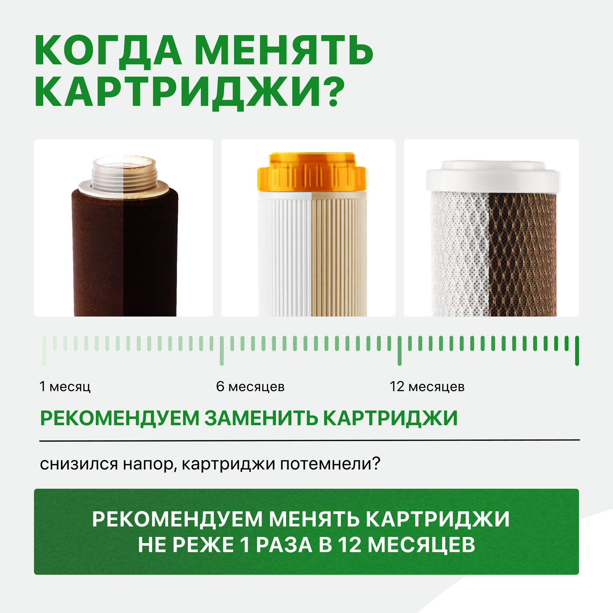 | Плюсы: | Меняю фильтры сам на протяжении 12 лет, проблем с заменой нет. Картридж "Арагон2" меняю 1 раз за 2а года эксплуатации, каждые полгода делаю механическую очистку. Остальные стараюсь менять раз в полгода - этого достаточно для семьи из 3-х человек. |
