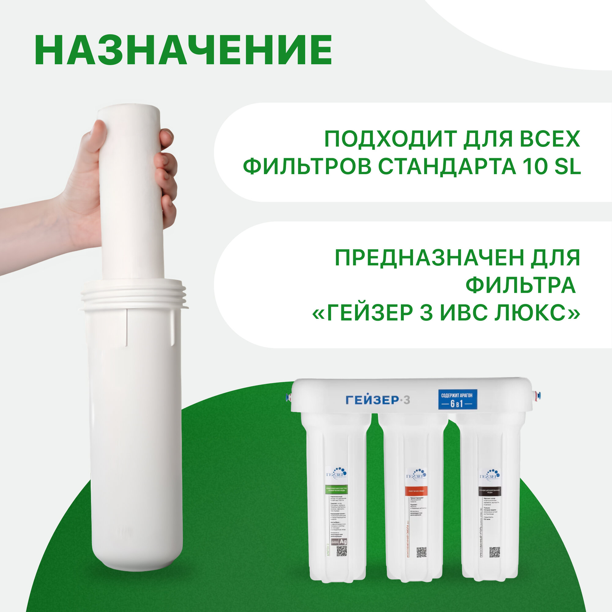 | Дополнительная информация | предназначен для фильтра Гейзер 3 ИВС Люкс (высокий уровень минерализации); комплектация: Арагон 2, БС - 10SL, СВС 0,6 - 10SL, муфта уплотнительная тип "И" |