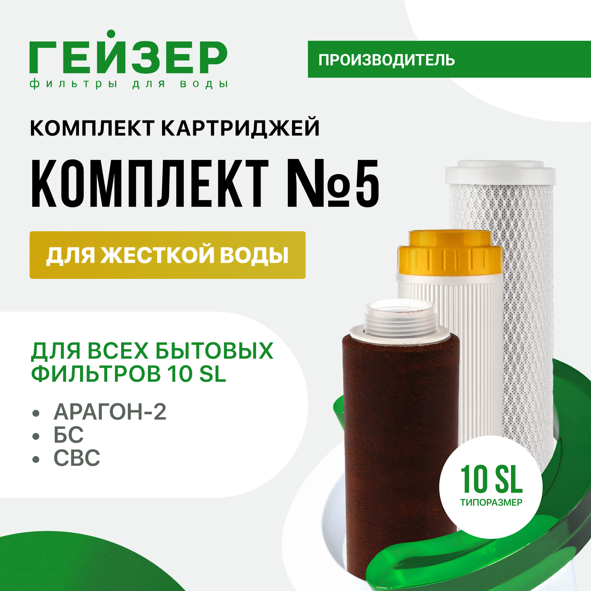 Купить Комплект картриджей Гейзер № 5, для жесткой воды, предназначен для фильтра Гейзер 3 ИВС Люкс (высокий уровень минерализации), 50009