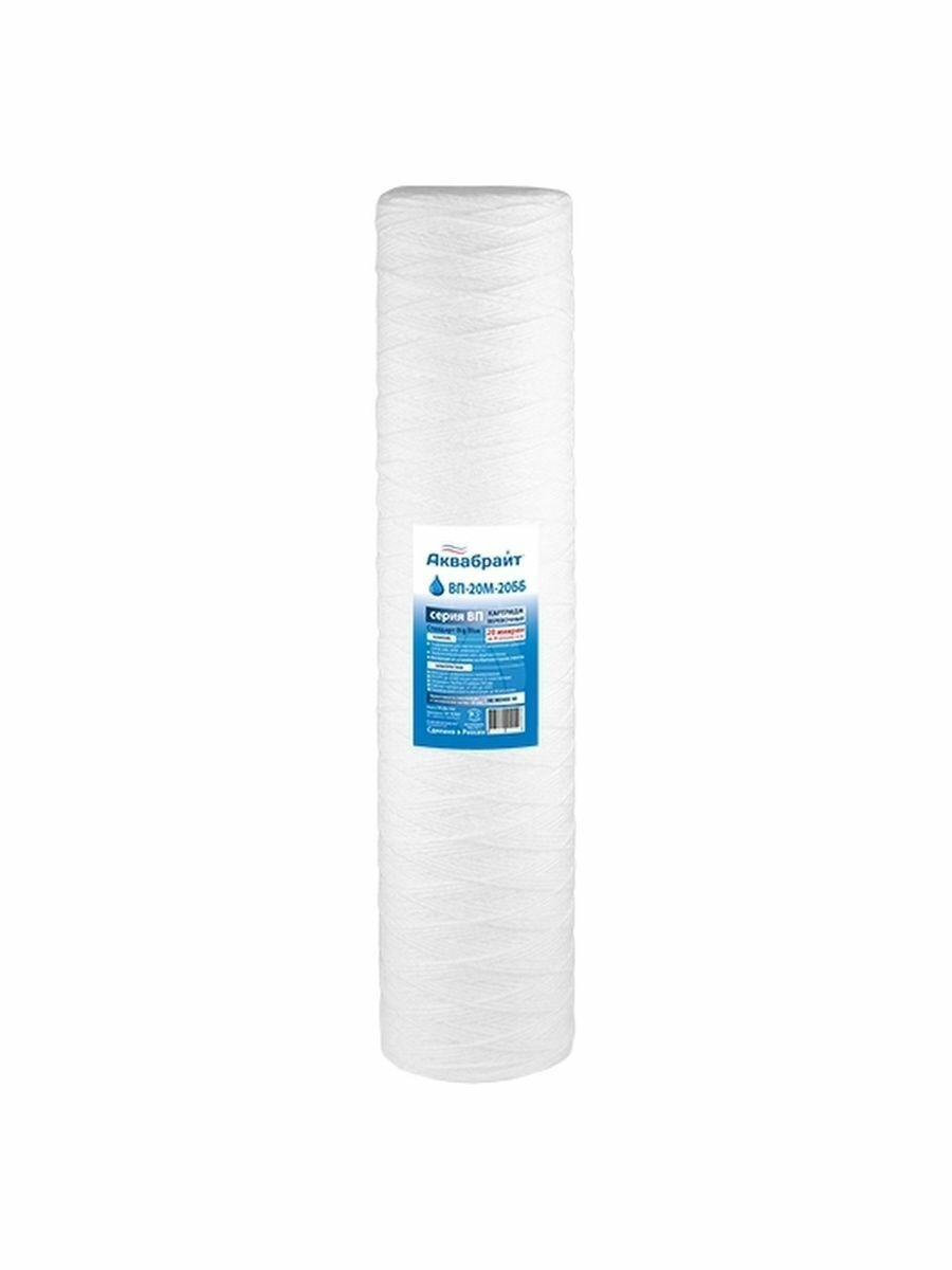 Картридж для механической очистки воды веревочный аквабрайт ВП-20М-10ББ (1шт.), для фильтра, Big Blue 10, 20 микрон