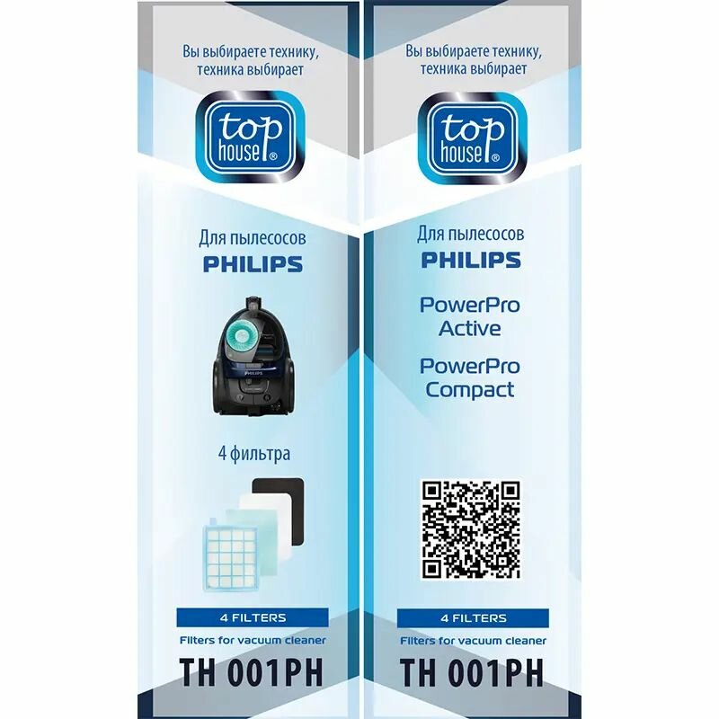 Купить TOP HOUSE TH 001PH Комплект фильтров для пылесосов PHILIPS, 4 шт. 180124