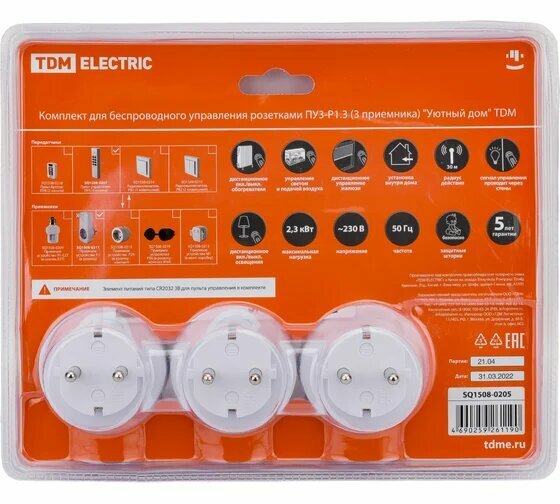 СохранитьTDM Комплект для беспроводного управления розетками ПУ3-Р1.3 3 приемника ""Уютный дом"" SQ1508-0205 интересное: