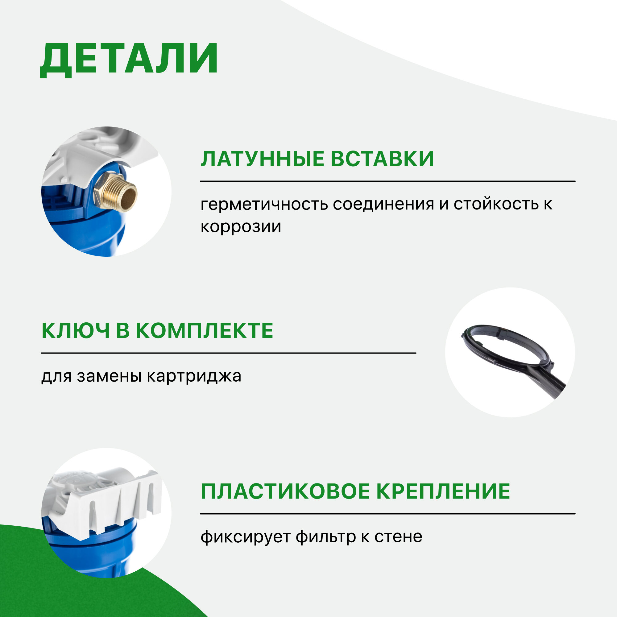 | Плюсы: | Добротный фильтр, сделан очень качественно. Колба изготовлена из прочного пластика, немаловажно что внутренние вставки крышки из металла. Купил переходники, поставил клар, установил фильтр и пользуйся. Отличный ресурс фильтра. В комплекте фильтр отсуствует, покупается отдельно. Ссылку оставлю