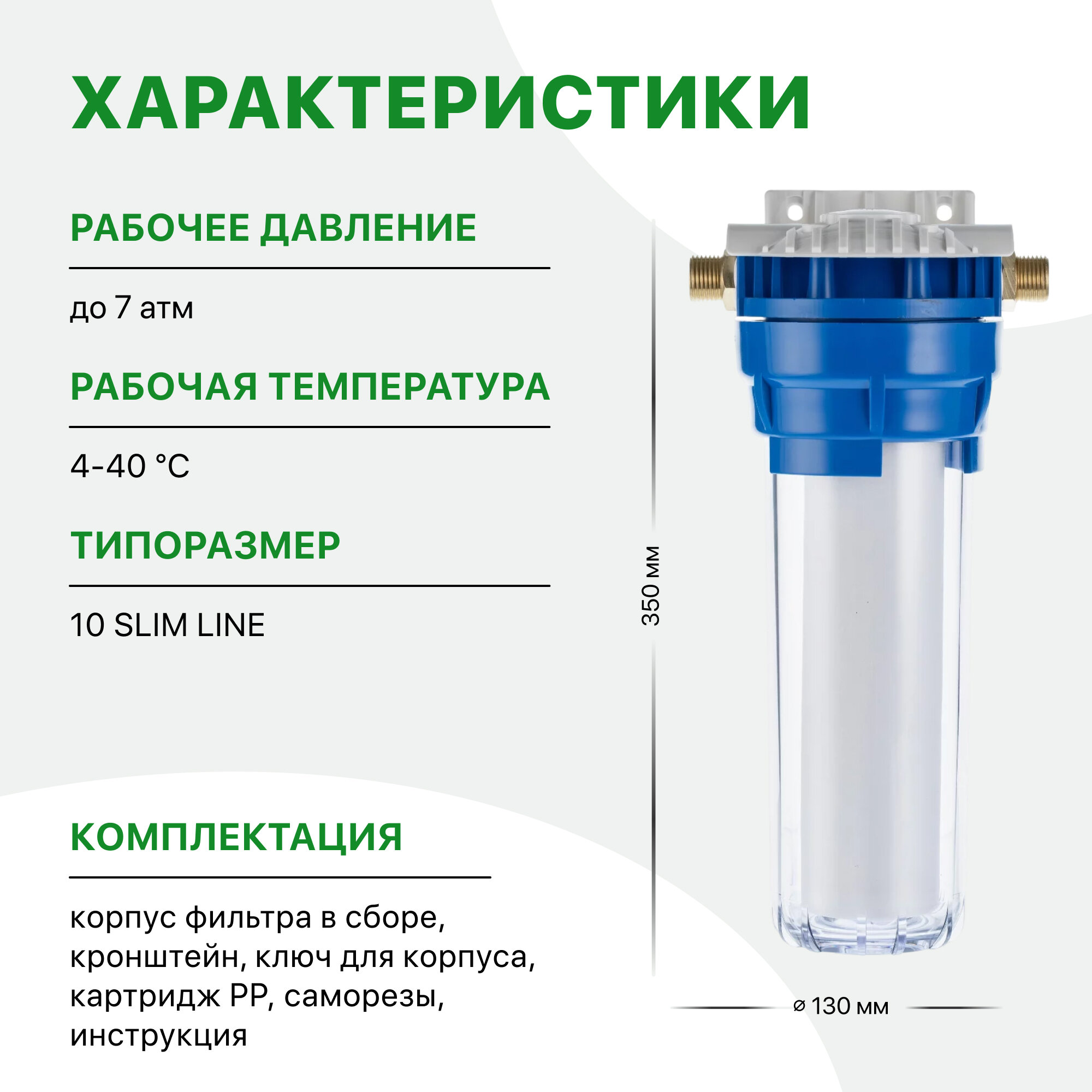 Купить Фильтр магистральный Гейзер-1П 10SL 1/2" , с картриджем, очистки холодной воды от механических примесей и взвешенных частиц, 32007