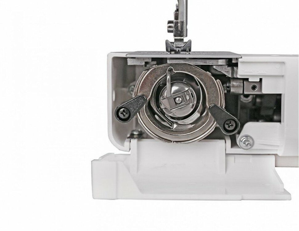 | Дополнительная информация | выдвижные катушечные стержни; 15 швейных операций: прямая строчка (центральное и левое положение иглы), зигзаг, эластичный зигзаг, потайные строчки, трикотажная строчка, трикотажный зигзаг, строчка мережка, оверлочные строчки, петля-полуавтомат, декоративные строчки; регулятор натяжения верхней нити; легко пристегивающаяся лапка; дополнительный подъём лапки; регулировка длины стежка; встроенный нитеобрезатель |