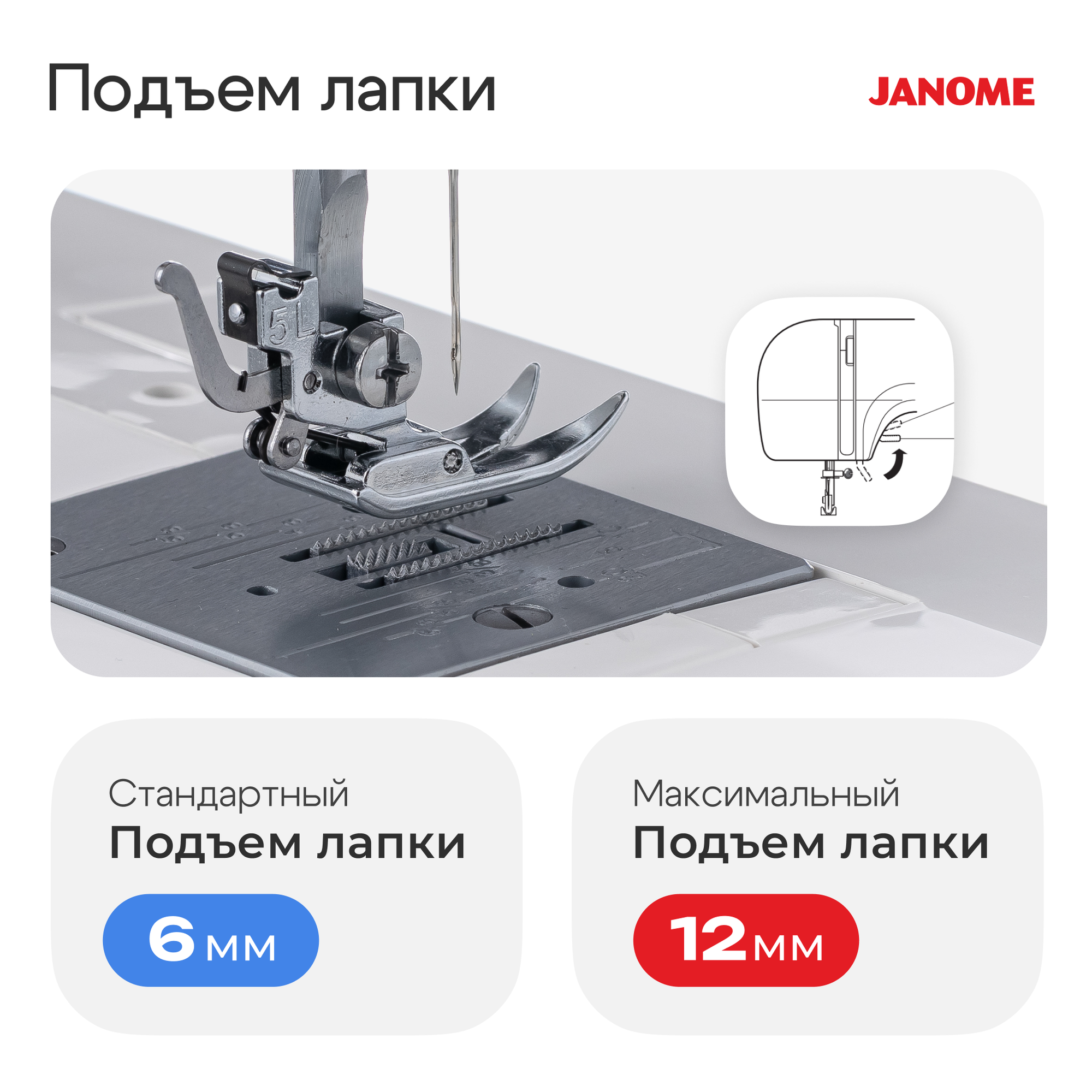 | Строчки | обметочная, потайная, эластичная, эластичная потайная, «зигзаг» |