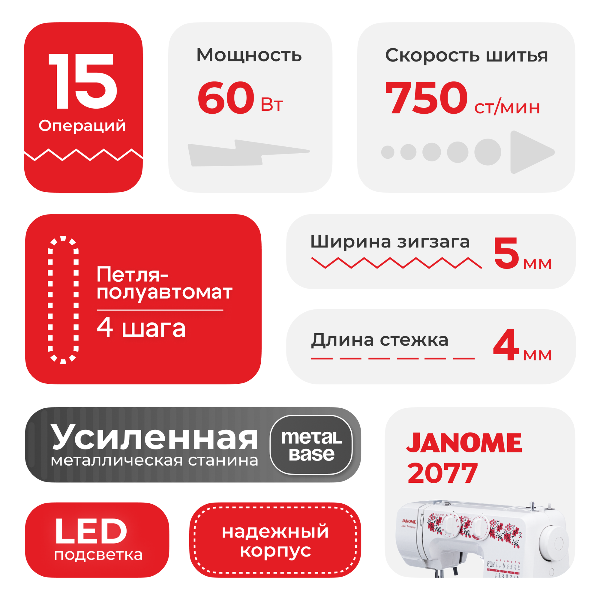 Швейная машина Janome Home Decor 2077 интересное: