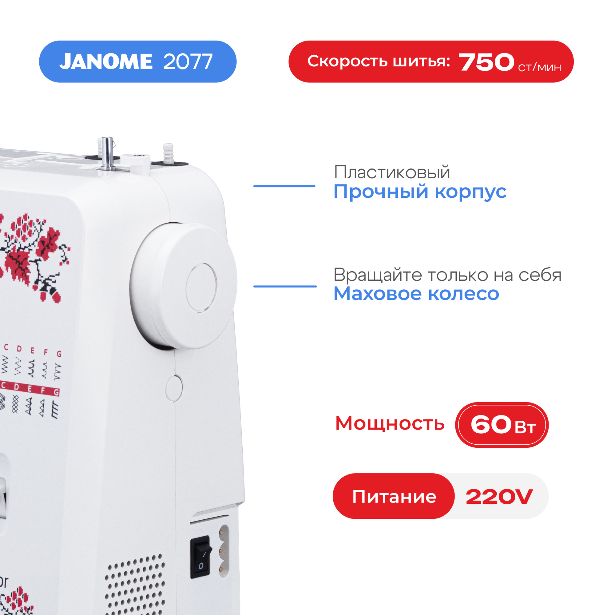 Ниже Вы можете прочитать отзывы на Швейная машина Janome Home Decor 2077, ознакомится с подробными характеристиками, посмотреть интересные обзоры и фотографии на Швейная машина Janome Home Decor 2077.