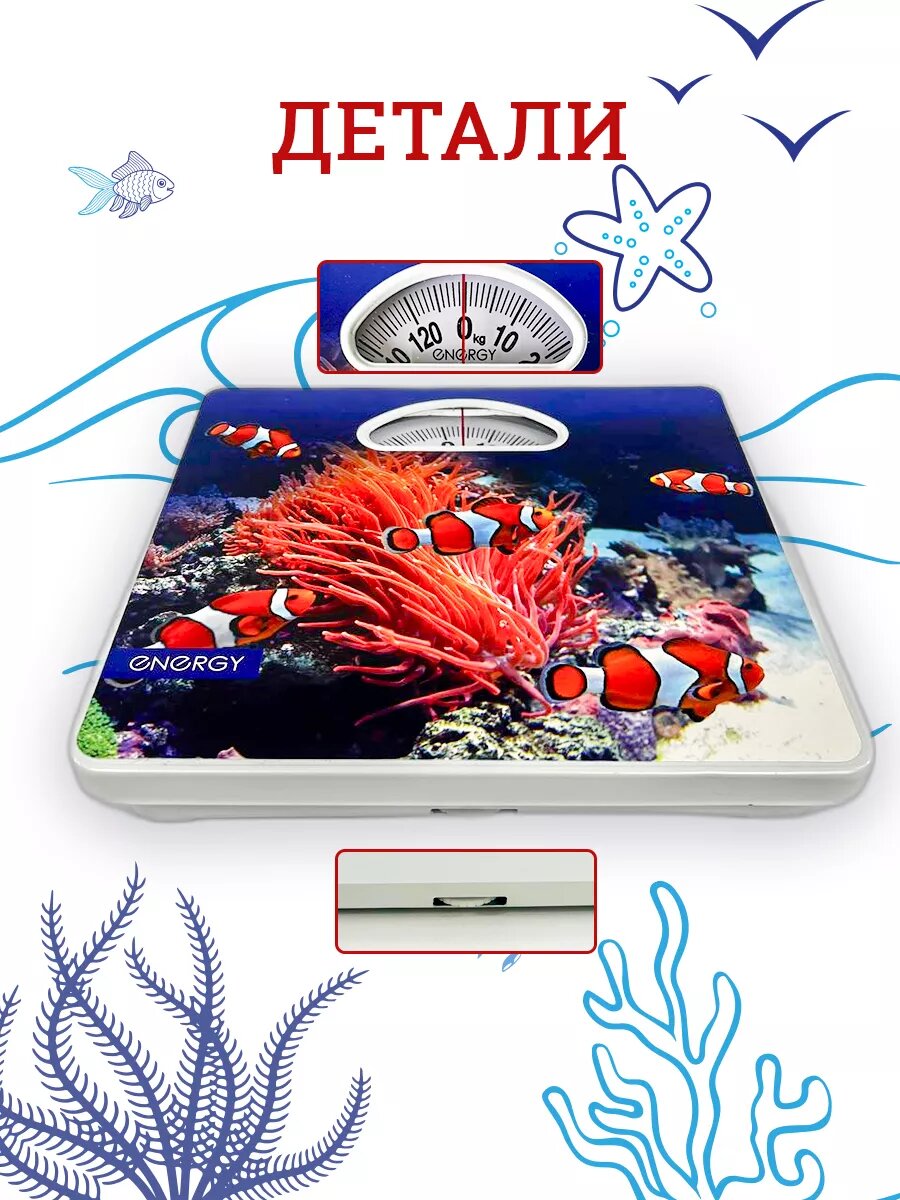 Весы напольные механические ENERGY ENМ-408H, до 120 кг, картинка "рыбки"