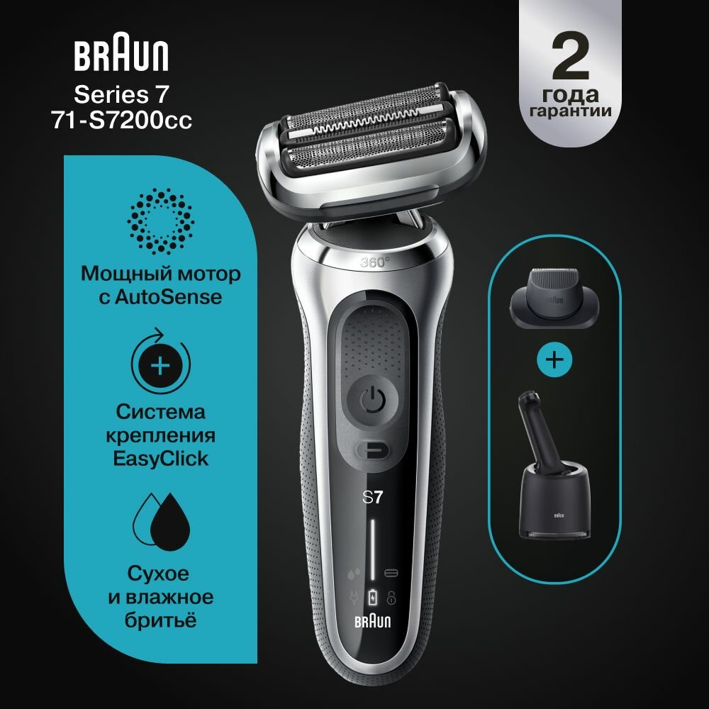 Электробритва Braun Series 7 71-S7200cc/N7200cc, серебристый/черный