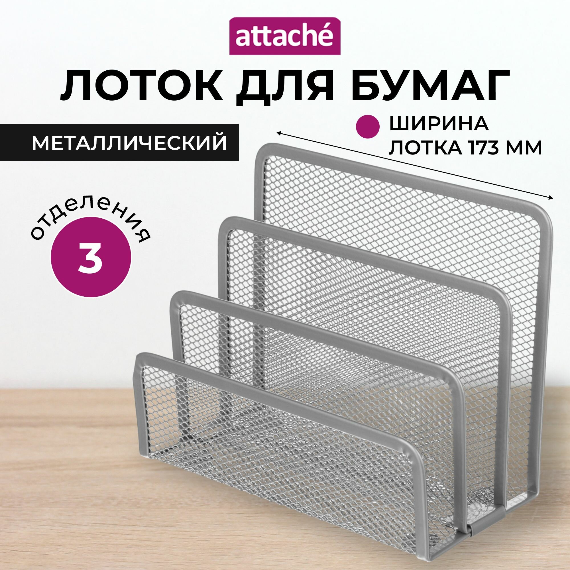 Подставка для бумаг и писем Attache (3 секции, металлическая сетка, высота 135 мм, серебро)