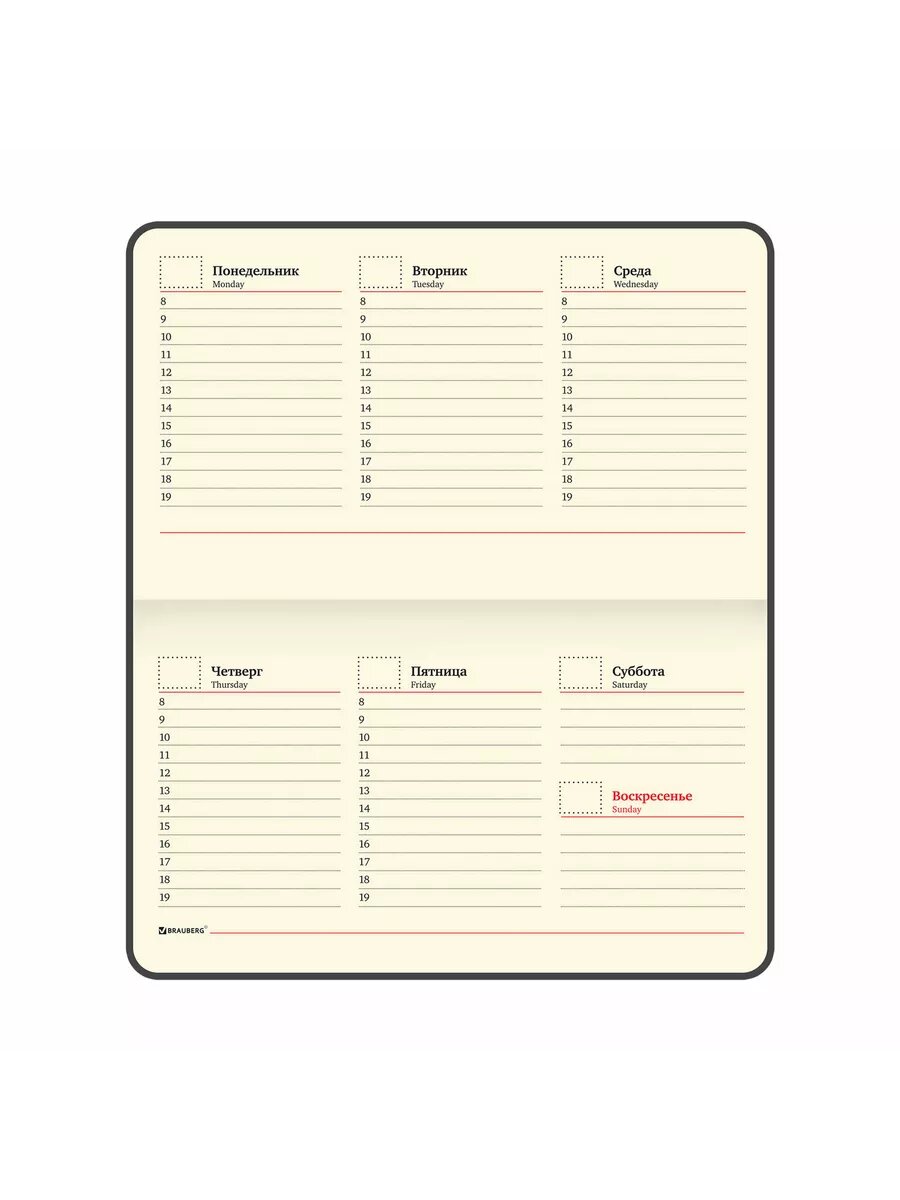 Еженедельник недатированный Brauberg малый, 95х155 мм, а6 iguana под кожу, 64 л, черный (114480)