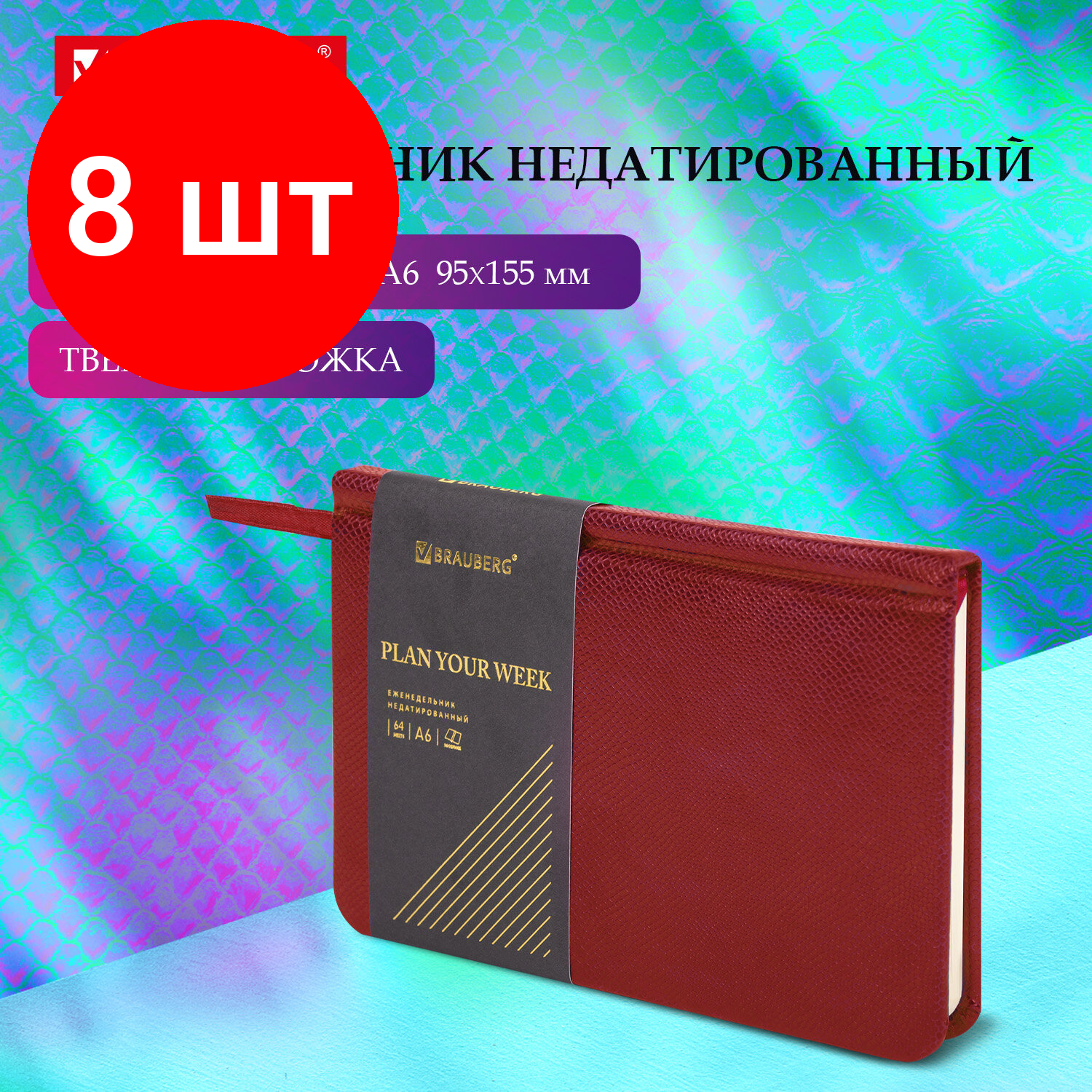 СохранитьКомплект 8 шт, Еженедельник недатированный малый формат 95х155 мм А6, BRAUBERG "Iguana", под кожу, 64 л., красный, 114481 интересное: