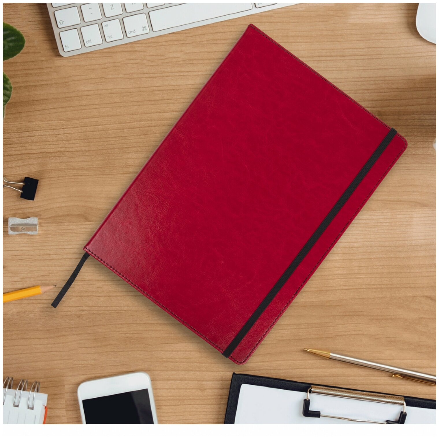 Ежедневник недатированный с резинкой А4 210х297 под кожу красный BRAUBERG Office, код, 113286