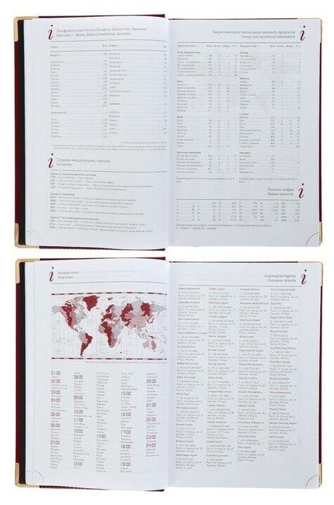 | Особенности | металлические уголки на обложке / справочная информация / ляссе / прошивка по периметру обложки / цветной обрез |