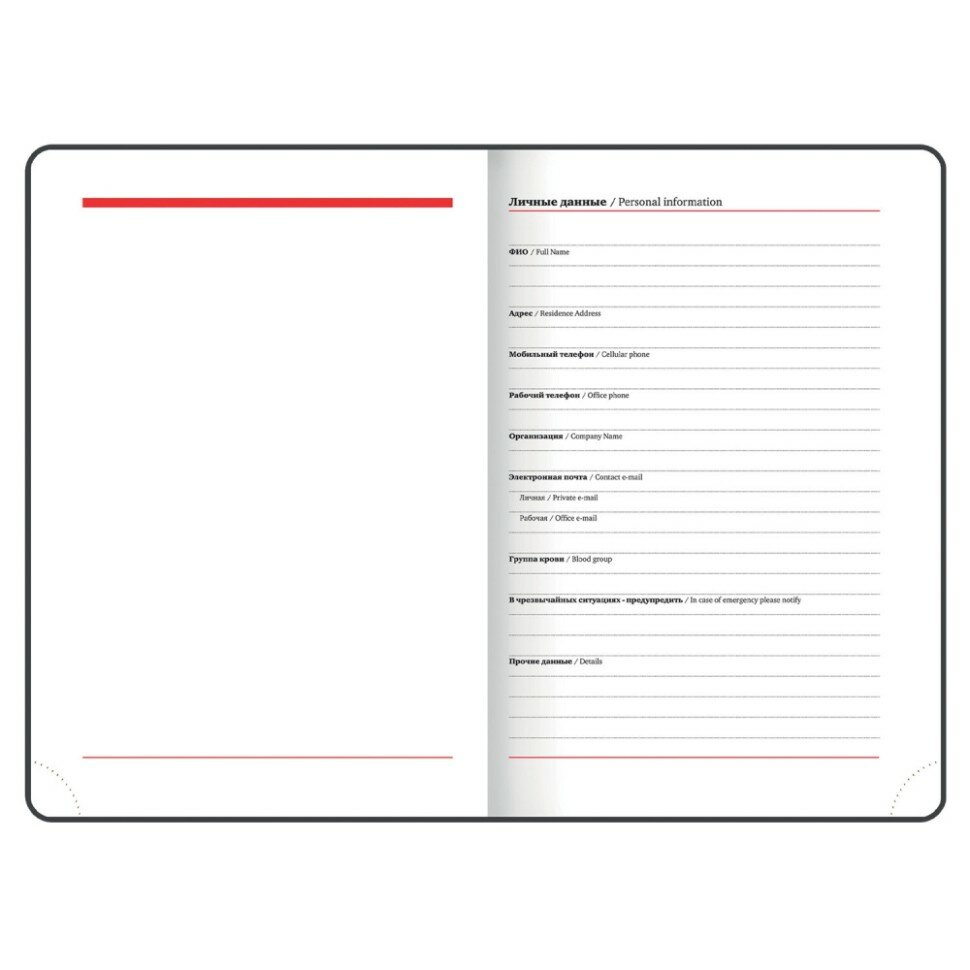 | Особенности | перфорация уголков / справочная информация / ляссе / держатель для ручки / прошивка по периметру обложки / цветной обрез / закругленные углы |