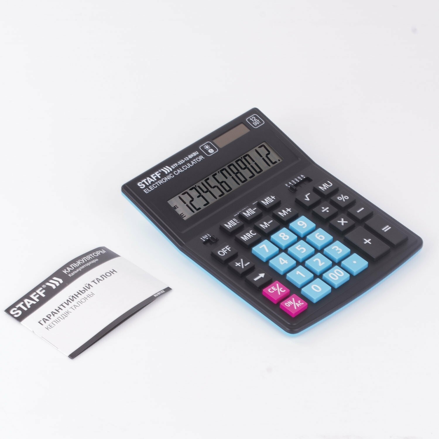 Калькулятор настольный STAFF PLUS STF-333-BKBU ( 200×154 мм) 12 разрядов, черно-синий, 250461