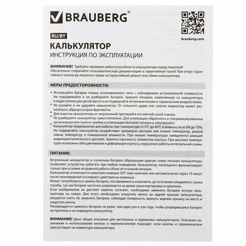 Калькулятор Brauberg Ultra Color-12-BKLG