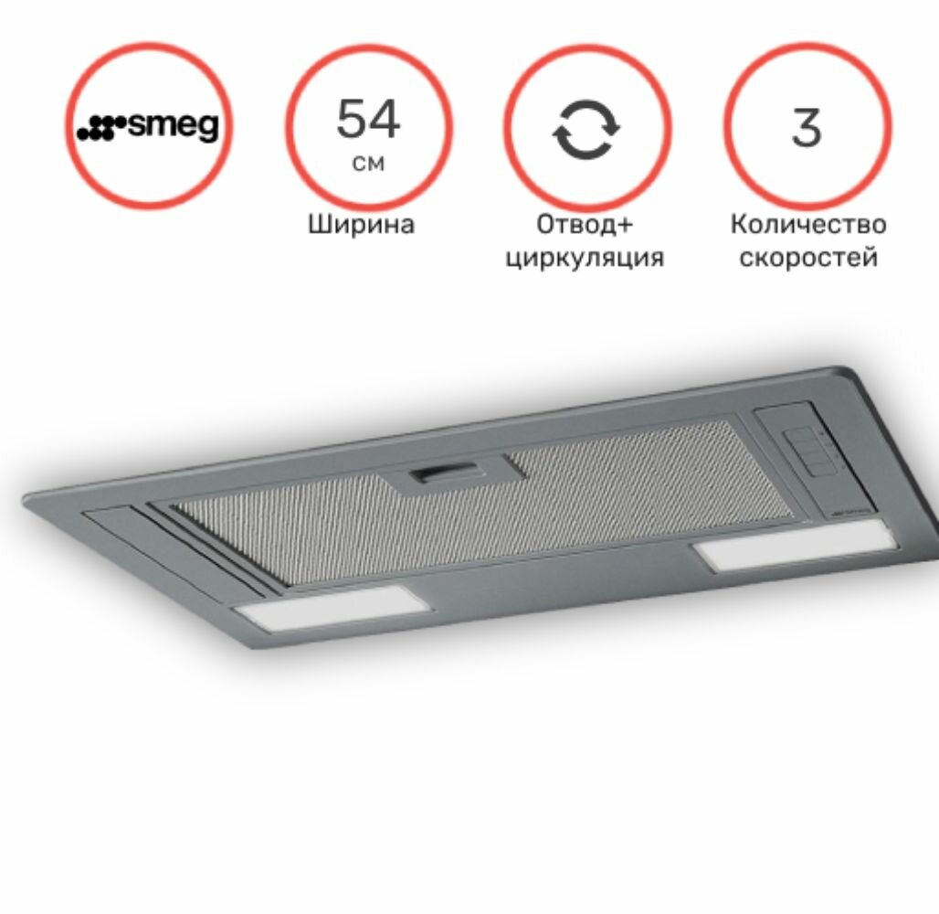 Вытяжка SMEG/ Встраиваемая вытяжка, 54 см , эмалированная сталь, серебристый