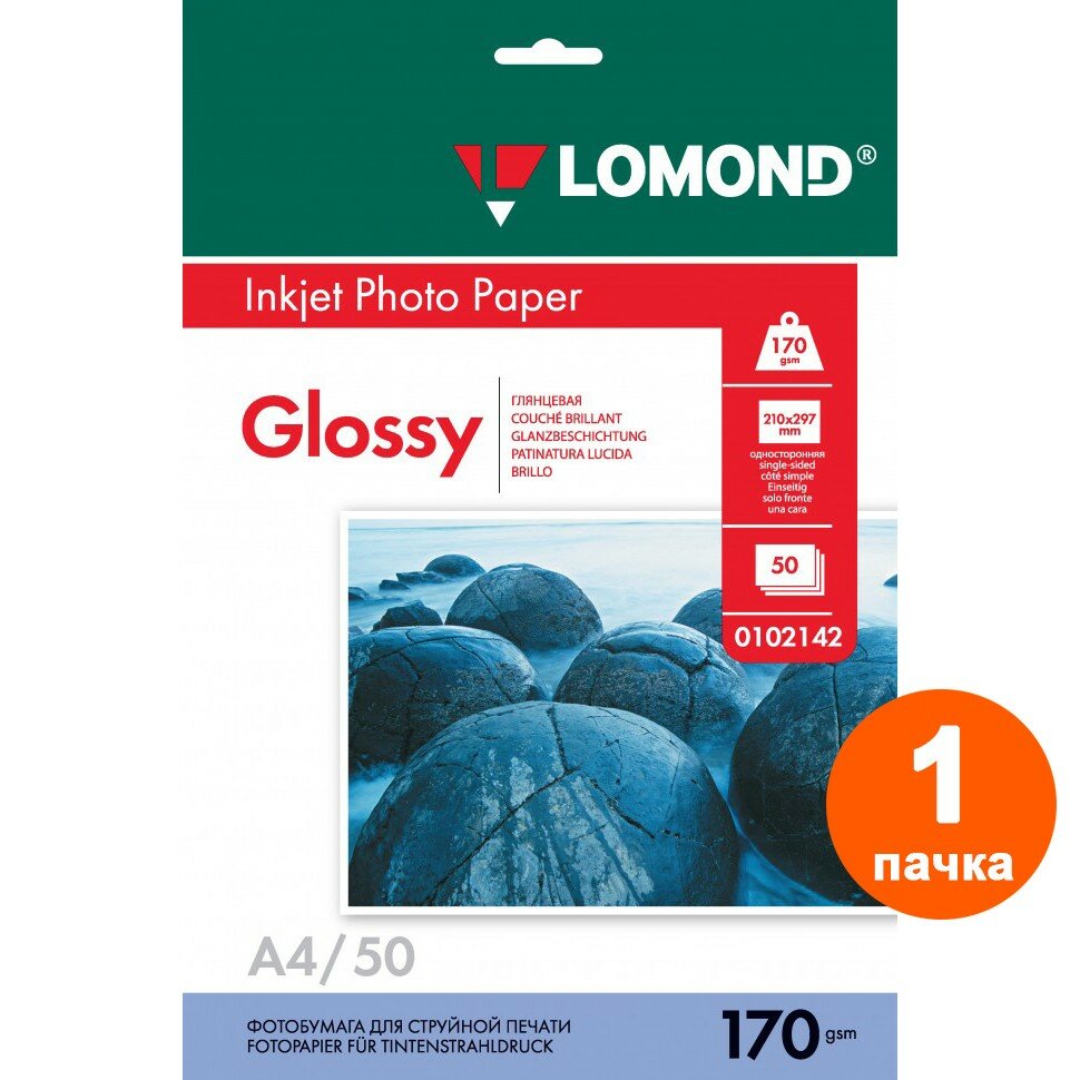 Фотобумага глянцевая, А4, 170 г/м2, односторонняя, 50 листов, LOMOND, 0102142