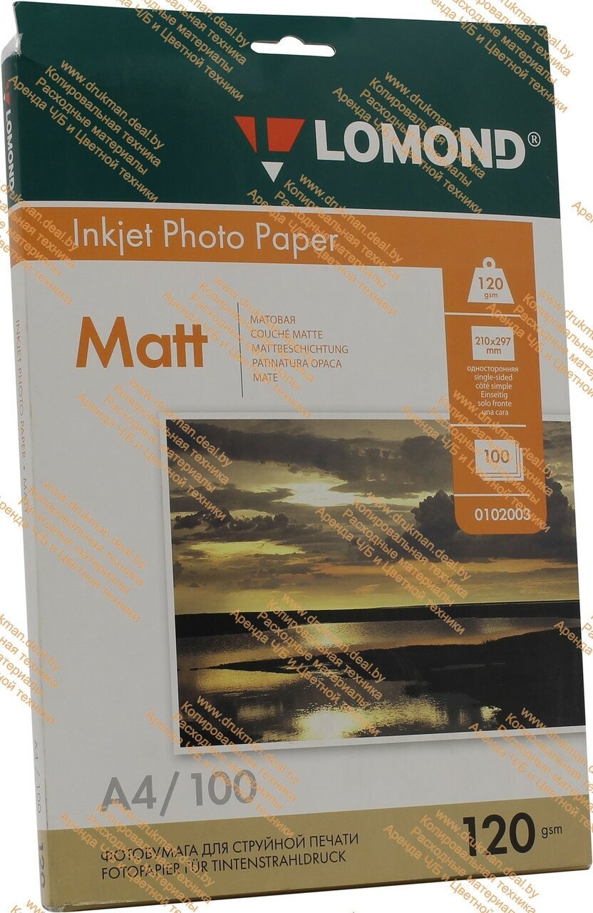 Фотобумага А4, 120 г/м2, 100 листов, односторонняя, матовая, LOMOND, 0102003