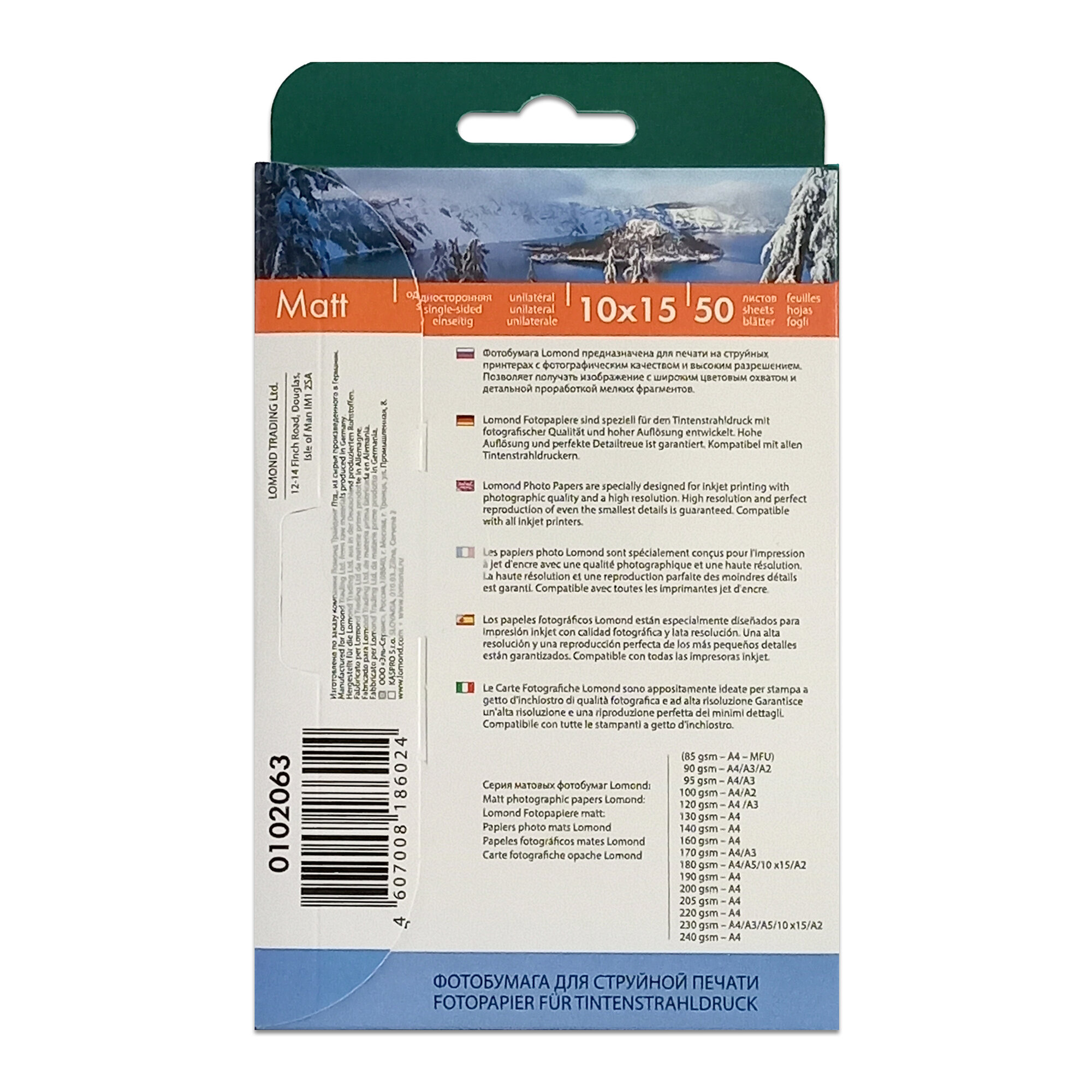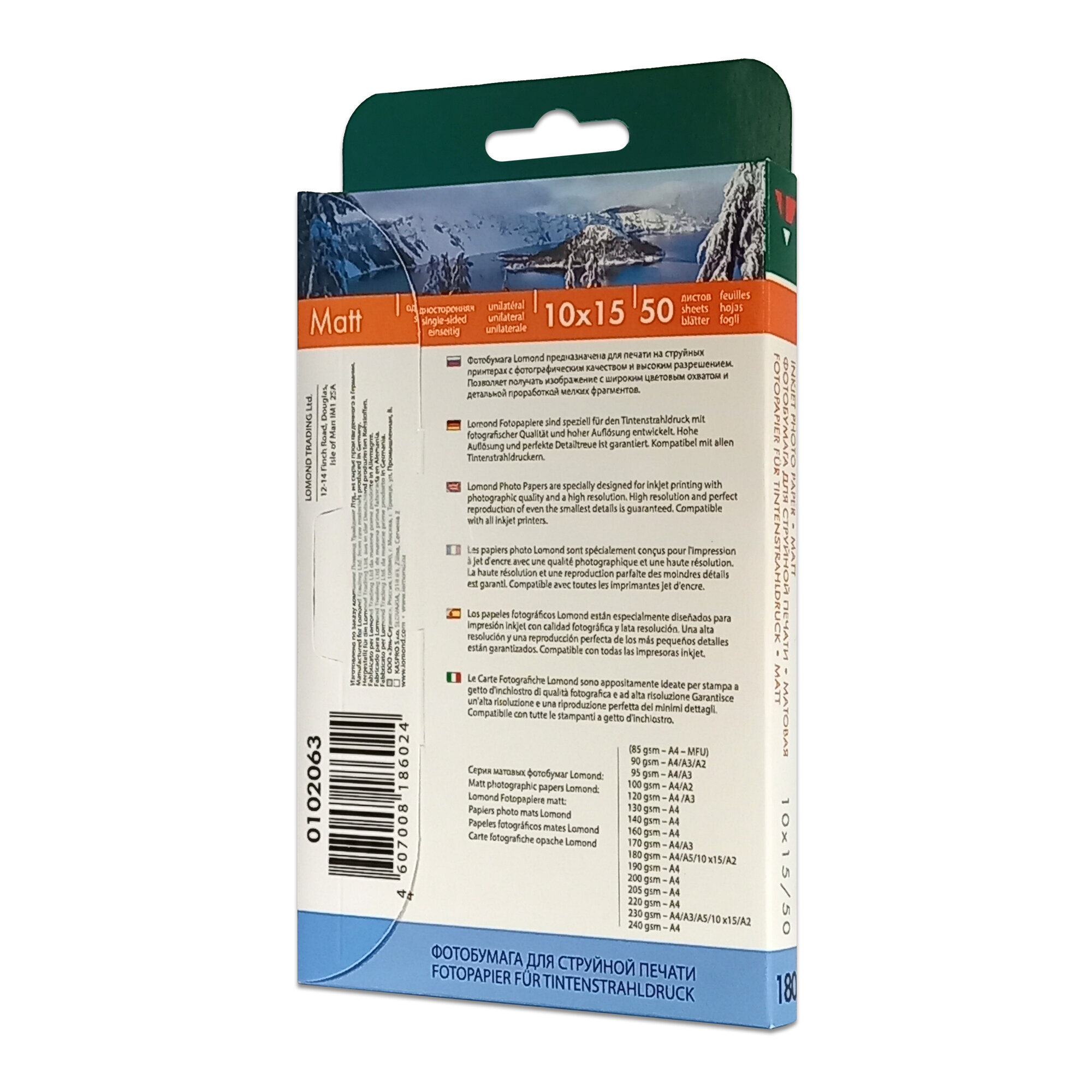 Купить Фотобумага 180 гр., А6 (10X15см), 50 листов, матовая, односторонняя, Lomond