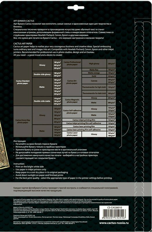 Фотобумага CACTUS CS-CA326010