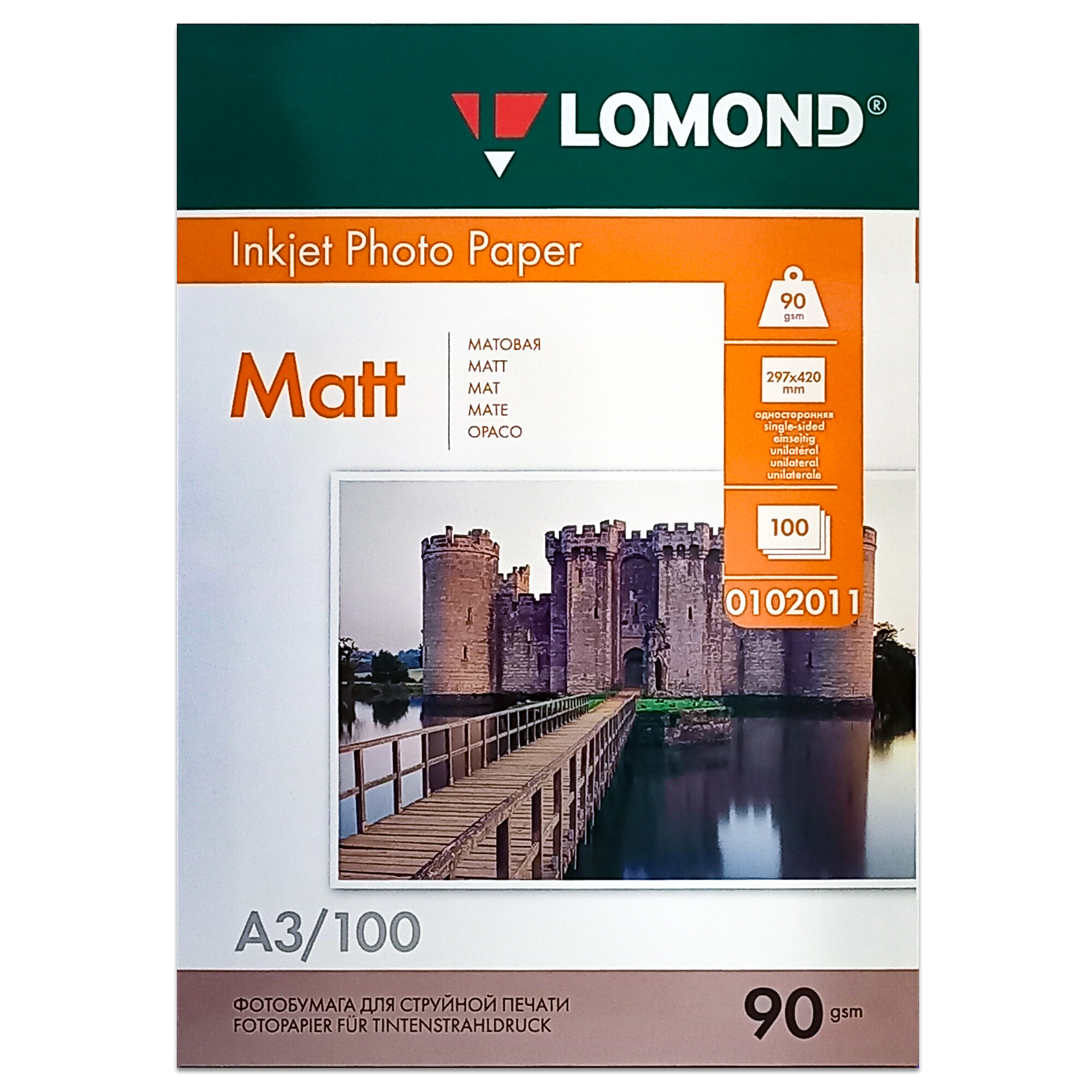Фотобумага для струйной печати А3, 100 листов LOMOND, 90 г/м2, односторонняя, матовая (0102011)