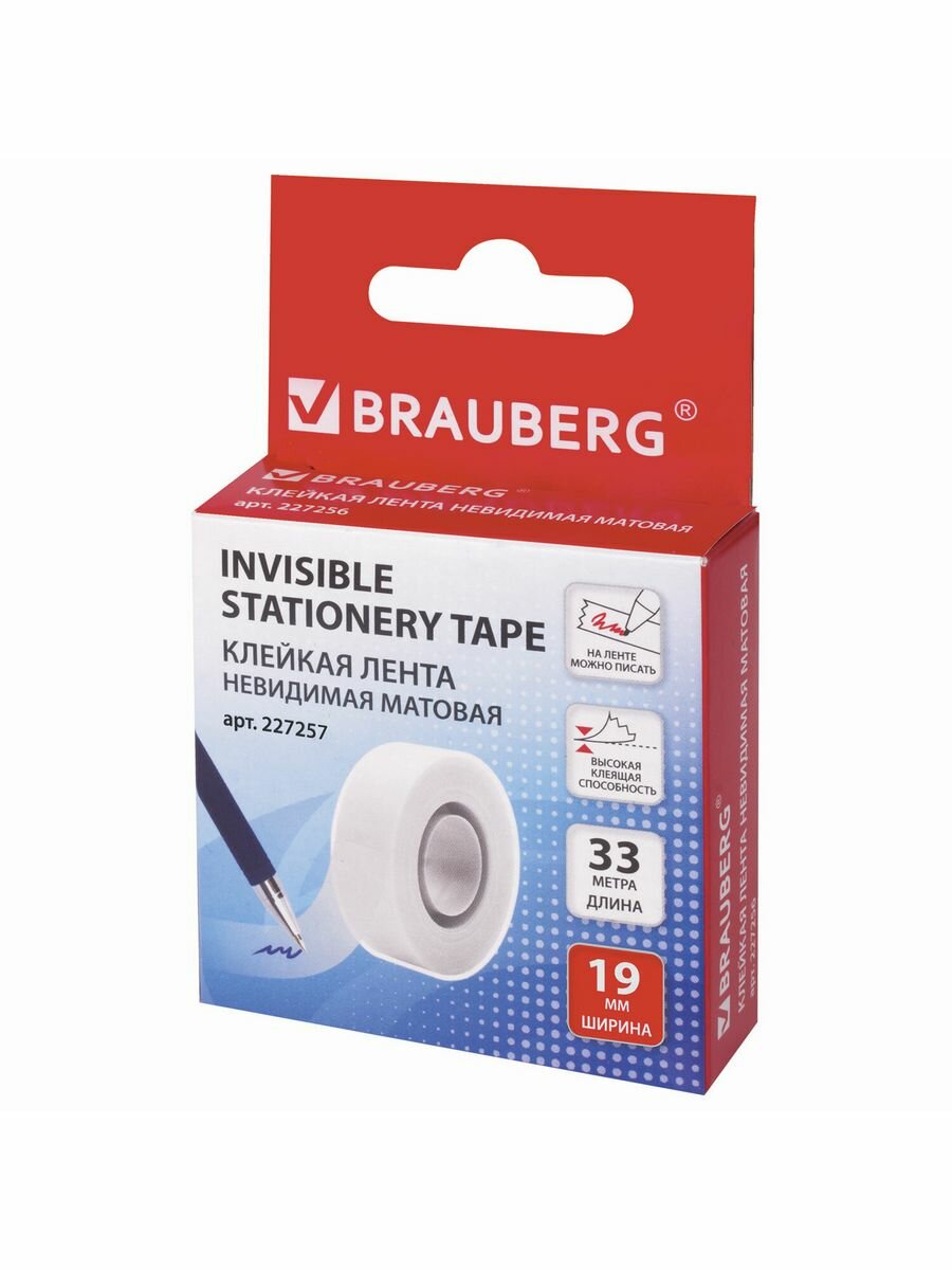 Клейкая лента Brauberg 12 ммх33 м, Невидимая, матовая (227256)