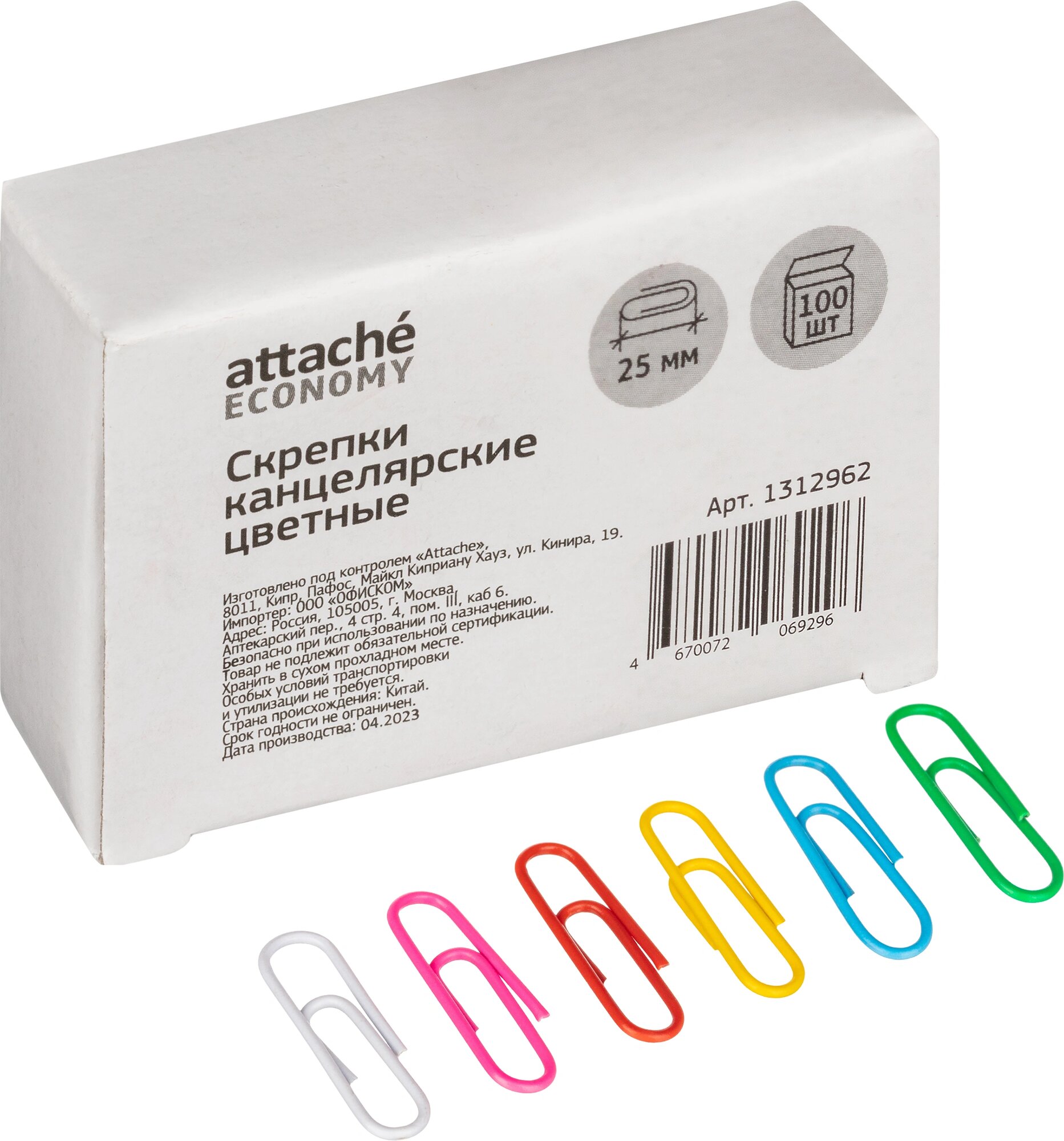 Скрепки 25 мм Attache Economy металлические с полимерным покрытием 100 штук в упаковке, 1312962
