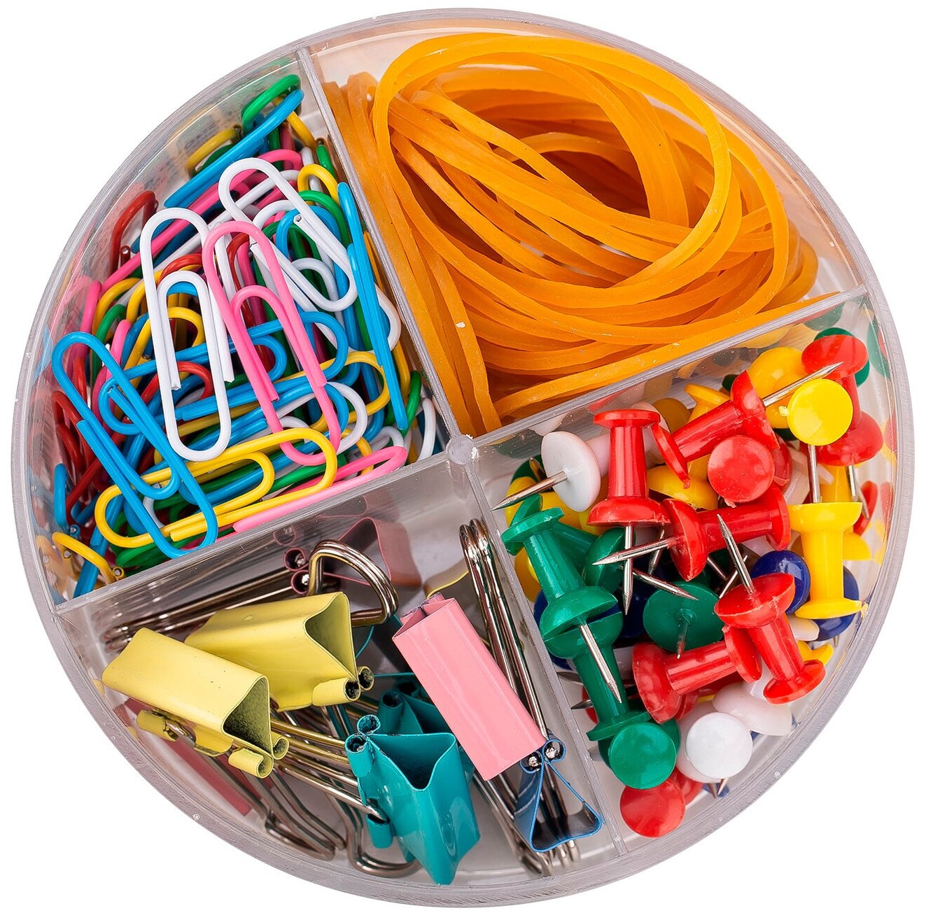 Attache Набор скрепки 250 шт., зажимы 14 шт., банковская резинка 50 шт., кнопки 40 шт. (647555)