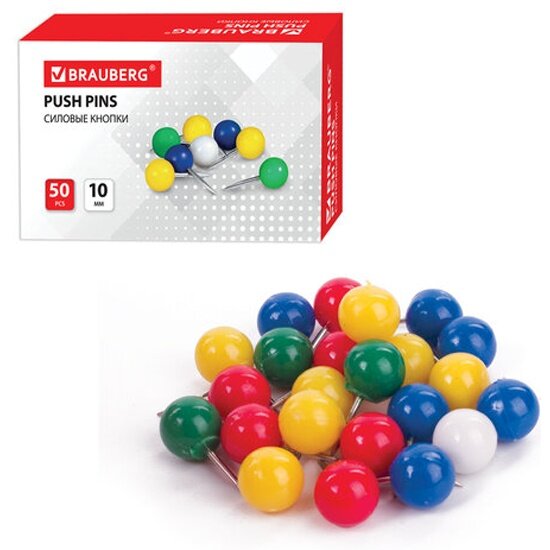 Силовые кнопки-гвоздики BRAUBERG, цветные (шарики), 50 шт., в картонной коробке, 221550, 221550