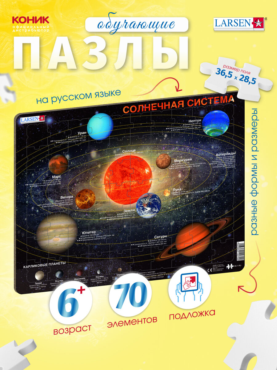 Пазл Larsen "Солнечная система", русский, 70 деталей