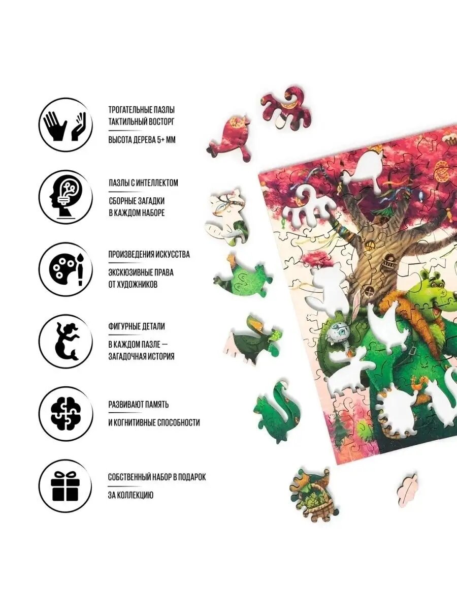 | Плюсы: | детали пазла деревянные, разнообразной формы, выполнены качественно. Всё запаковано в удобную твёрдую коробку с магнитным замком. Ребенку интересно собирать и уже не один раз. понравилось очень! |