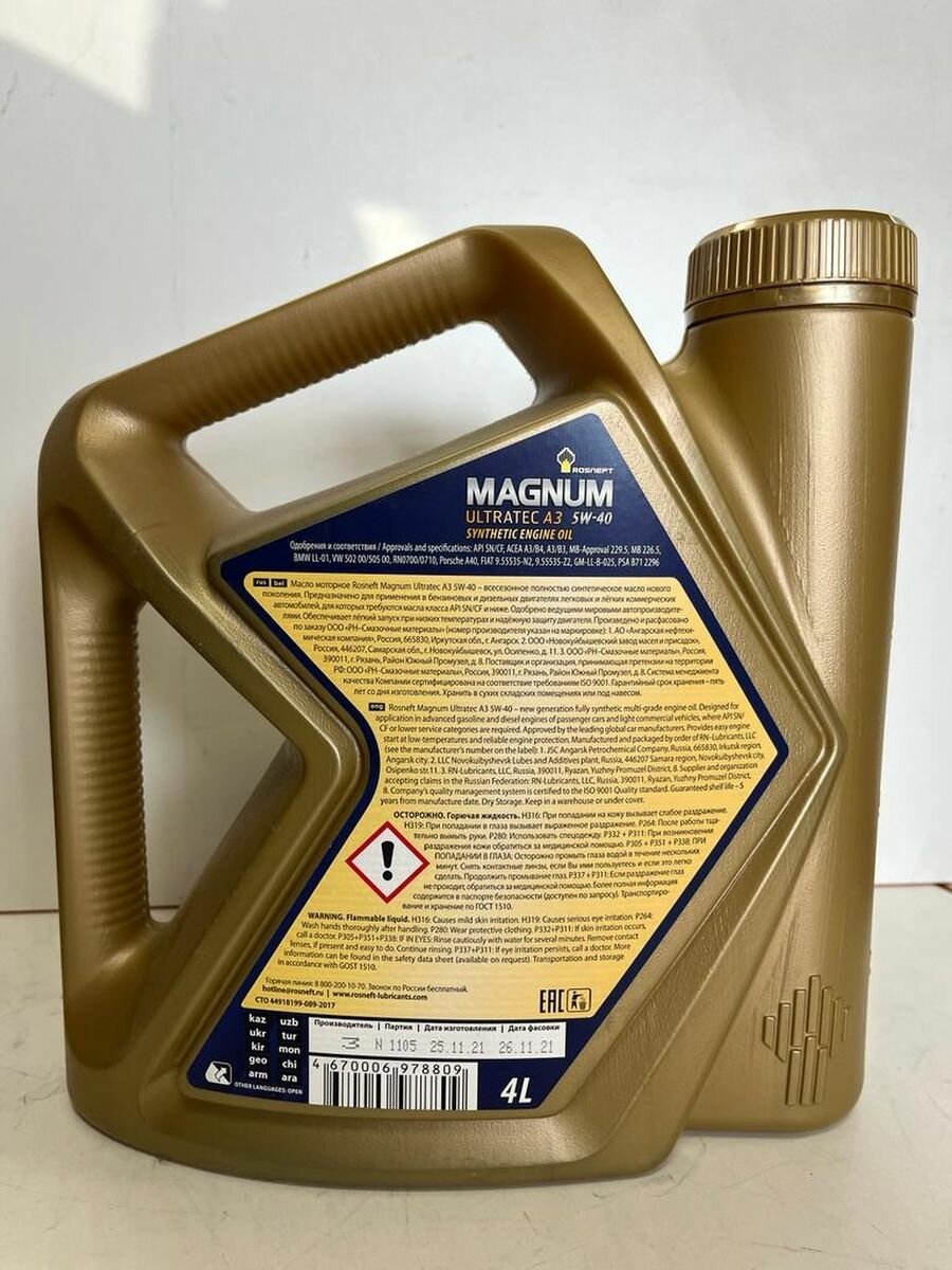 p.s: позже продавец Rosma пропал из маркетплейсов, поэтому ещё два раза, беру данное масло у продавца Енисей-Сервис, это тоже официальный дистрибьютор! Цена у него отличная. Масло это всегда радовало - двигатель работает ровно и без вибраций, а на холостых очень тихо. Масло на щупе темнеет в меру и постепенно - значит отмывает двигатель неплохо. По поводу работы при очень низких температурах ничего сказать не могу, т.к. живу на юге. Подъедается активно - до 2л/10тыс, но эта не вина масла, просто модель моего двигателя (CWVA) во всех автомобилях VAG имеет высокий расход масла (поэтому и беру сразу 2шт по 4л) Раньше брал этот продукт на фирменных АЗС Роснефть. Заливаю в Polo Sedan рест (1.6/110) уже в четвёртый раз, меняю на 10тыс - полёт нормальный, нареканий нет. Если ваш пробег в основном по городу, либо у вас агрессивный стиль вождения, то рекомендую менять ещё чаще - раз в 8-9тыс, для малолитражных турбированных моторов - не реже 7-8тыс! Не путайте Ultratec и Ultratec A3 - совершенно разные масла. В первом есть только соответствия стандартам, а во-втором - полноценные одобрения производителей, да и некоторые допуски повыше классом, поэтому оно значительно дороже. Хотя не до конца понятно, чем же заменили западные присадки ввиду санкционных ограничений. Данный продукт - топовое масло в линейке 5w40 от Роснефти. Рекомендую |