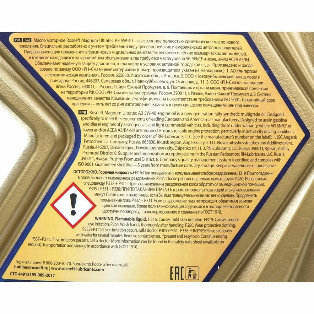 Rosneft Rn Magnum Ultratec 5w-40 А3 (4л) Рнпк