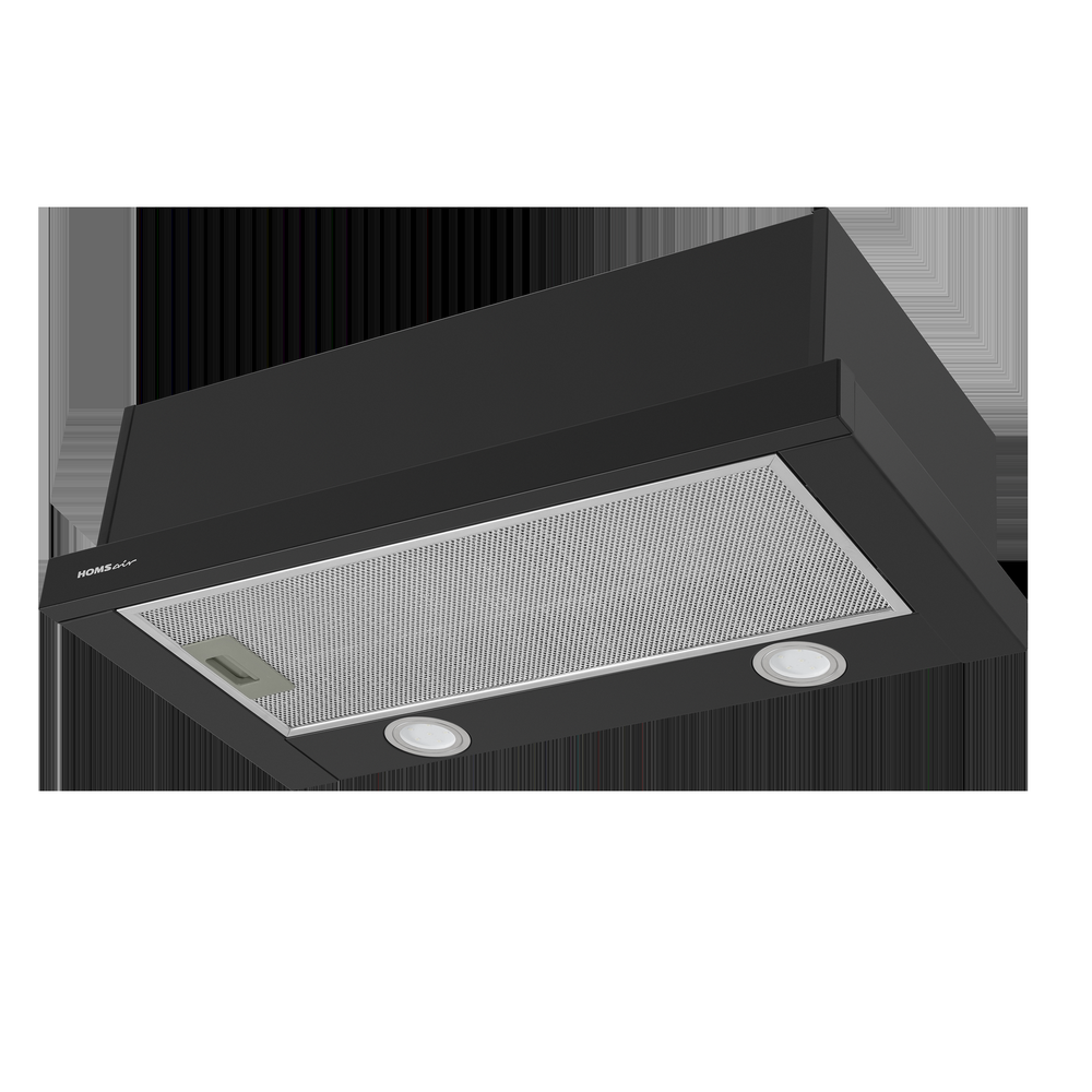 Вытяжка HOMSair Flat 60 Black/ встраиваемая, колыбельное управление, 2 скорости, 520 м3/ч, до 20 м2, 45 дБ, угольный фильтр CF110 - 1 шт, ШхВхД: 500х176х280 мм, черный цвет