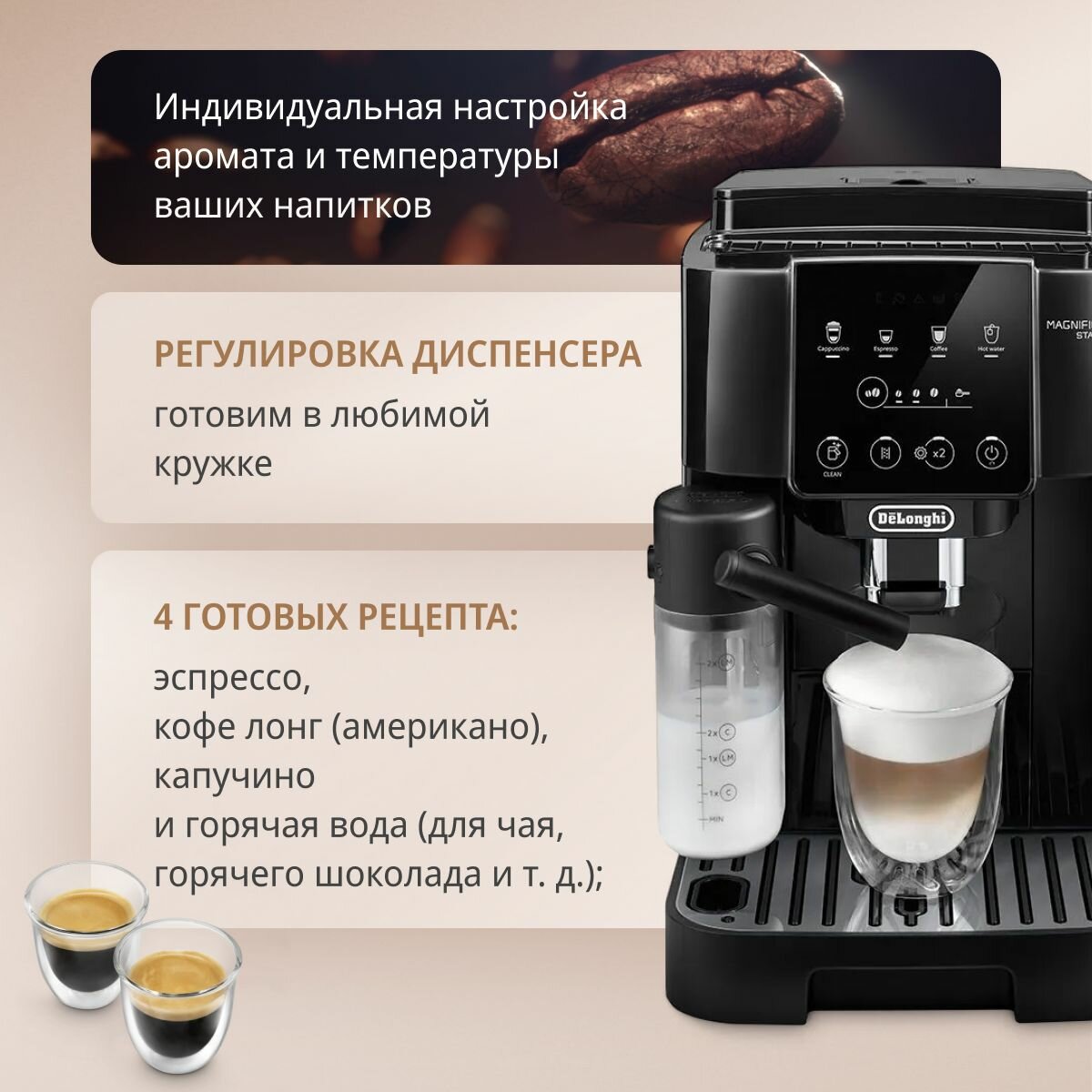 | Тип напитка | капучино / латте / эспрессо |