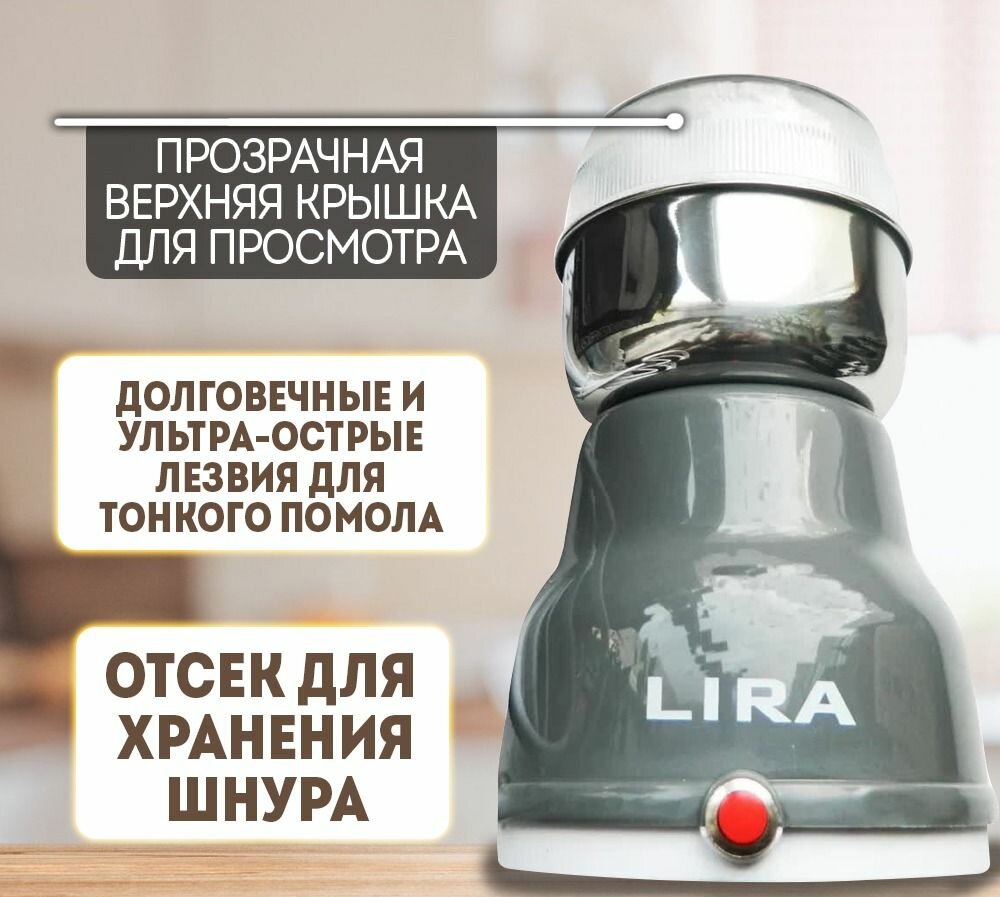 Кофемолка LIRA LR 0309 120 гр, серый интересное: