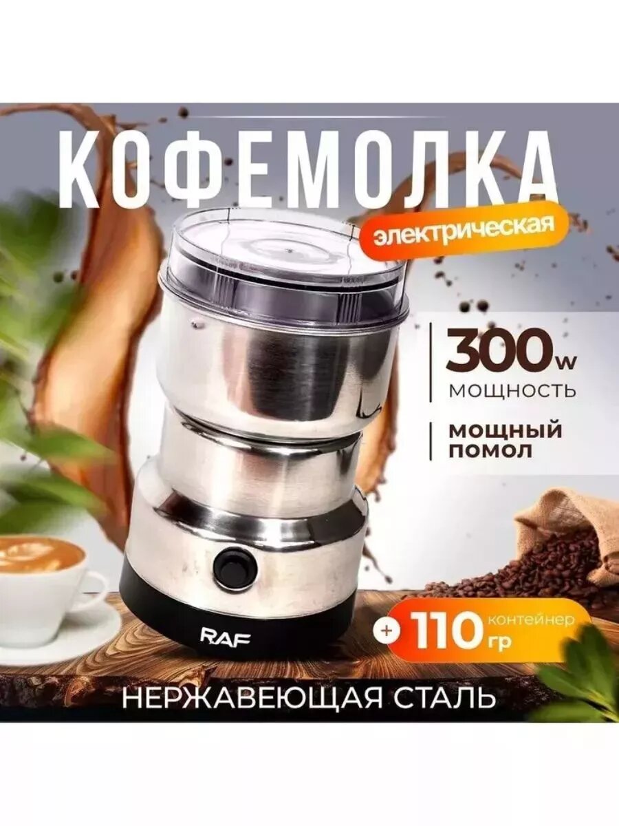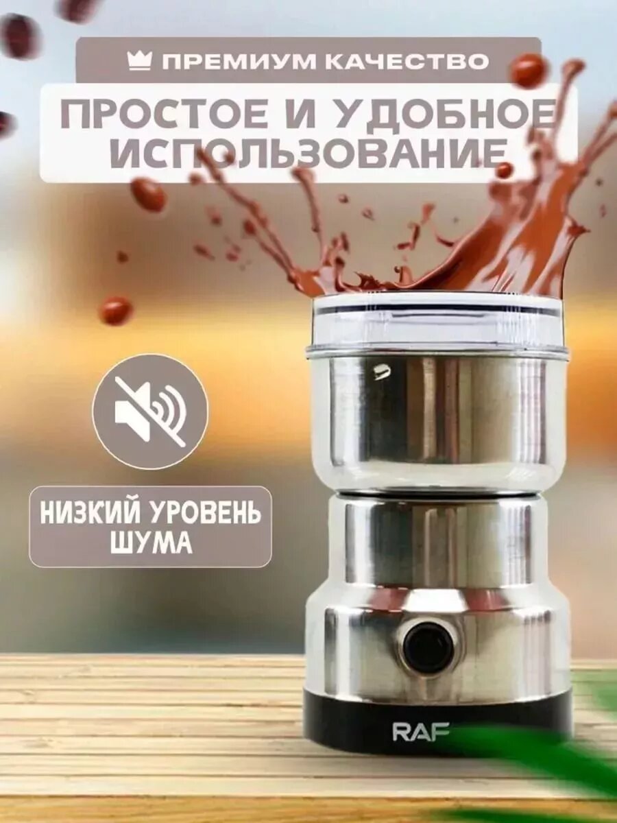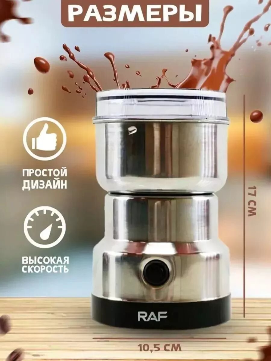 Кофемолка электрическая мощная 300 Вт. Многофункциональная Кофемолка RAF R7113 сталь, черная