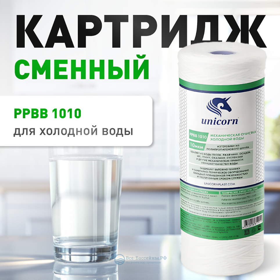 СохранитьКартридж механический из полипропиленового шнура 10'' BB 10мкм UNICORN (РР BB 1010) интересное: