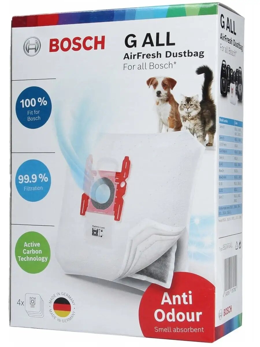 Мешки для пылесоса Bosch, Siemens Type G ALL BBZAFGALL AirFresh - микрофибра, для всех моделей пылесосов Bosch (кроме BSG8/BSN)