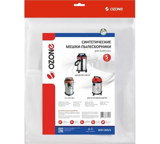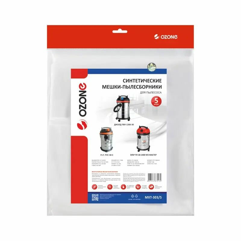Синтетические мешки-пылесборники Ozone MXT-303/5 для диолд, ЗУБР, PIT PVC 30 (5шт)