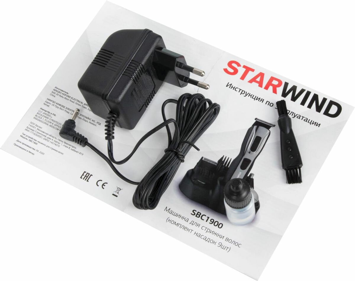 Машинка для стрижки Starwind SBC1900 черный/серебристый 2Вт (насадок в компл:9шт)